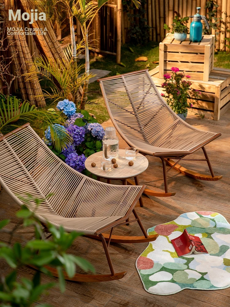 Mo Family Lazy Rocking Chair - Outdoor Single Lounge Chair for Adults, Creative Minimalist Design for Balcony Relaxation and Comfort