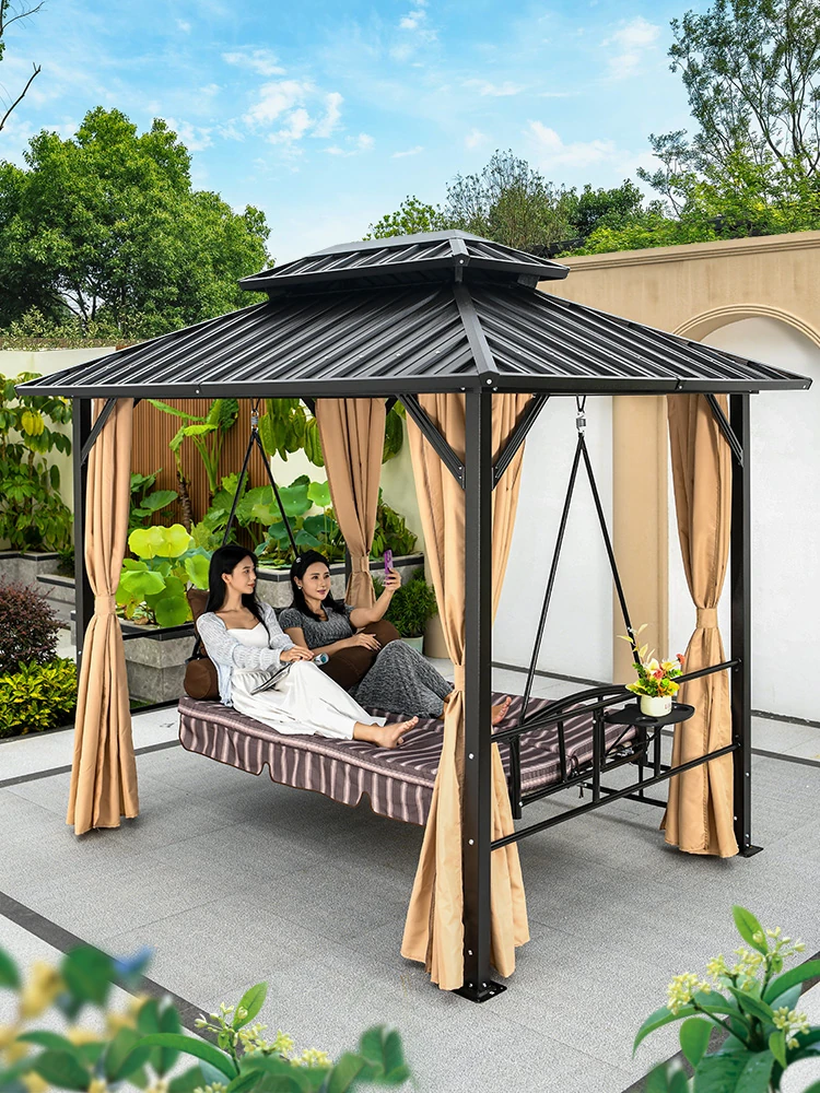 Mo Family Outdoor Solar Swing Chair with Aluminum Roof - Perfect for Patios, Balconies, and Gardens, Ideal for Relaxation and Leisure in Your Home or Villa. Enjoy Comfort and Style with Our Durable and Elegant Design!