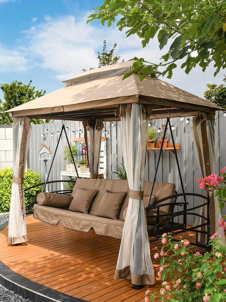 Mo Family Outdoor Swing Chair - Four-Person Garden and Patio Hanging Swing for Relaxation, Perfect for Villas and Outdoor Spaces. Enjoy Comfort and Style in Your Backyard!