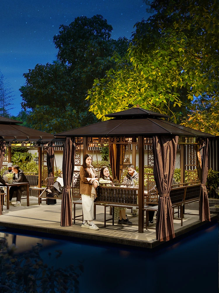 Mo Family Outdoor Pavilion - Elegant Chinese-Style Gazebo for Villas, Gardens, and Courtyards. Perfect for Sun Protection with a Stylish Sunshade Canopy for Your Outdoor Retreat!
