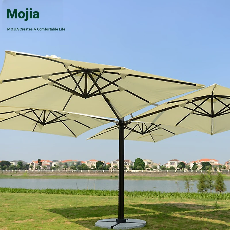 Large Outdoor Sunshade Umbrella - Premium Commercial Four-Headed Roman Umbrella for Villas, Resorts, and Courtyards - Perfect for Leisure and High-End Club Use