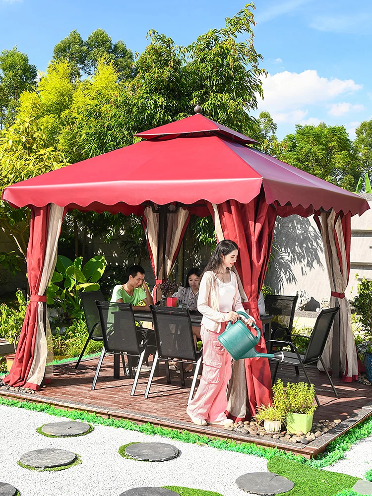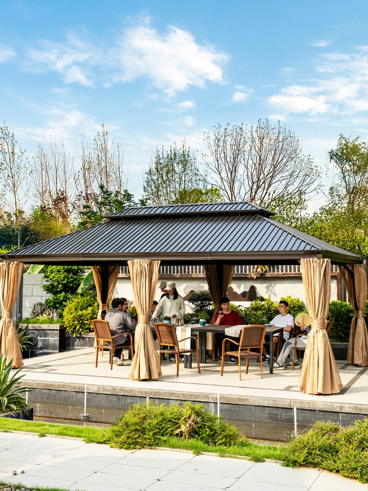 Mo Family Outdoor Pavilion - Stylish Garden Gazebo for Villas, Ideal for Relaxation with Sunshade Canopy and Durable Carbon Steel Structure, Perfect for Your Outdoor Oasis
