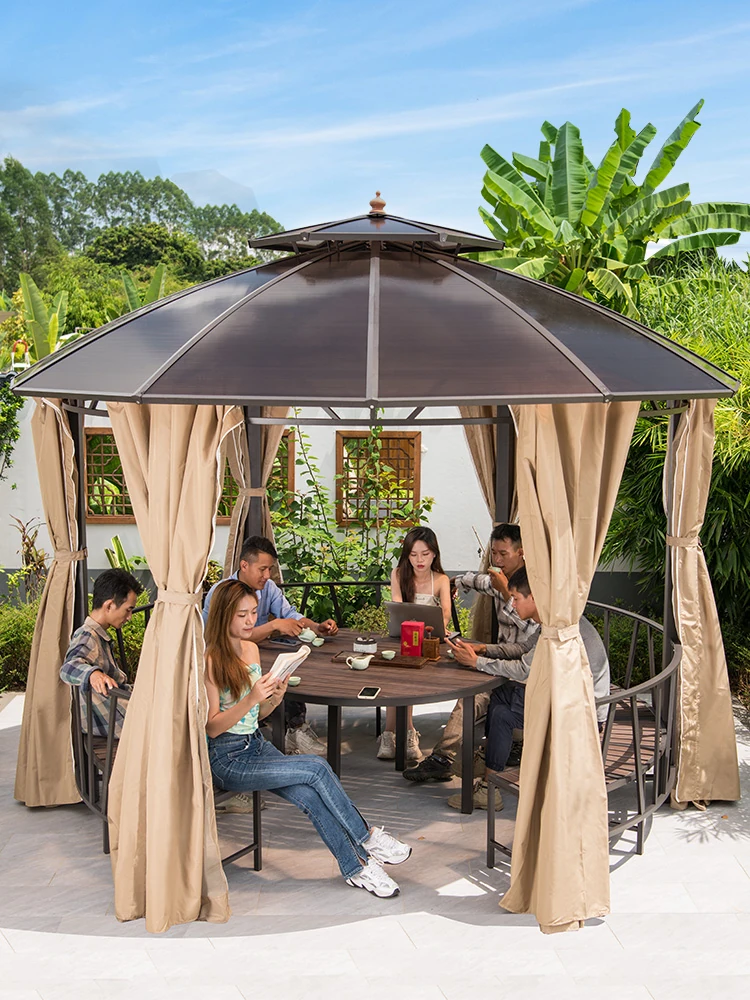 Mo Family Outdoor Pavilion - New Chinese Style Gazebo for Villas, Courtyards, and Gardens. Ideal for Open-Air Farm Stays and Sunshade with Polycarbonate Roofing. Perfect for Relaxation and Entertaining in Style!