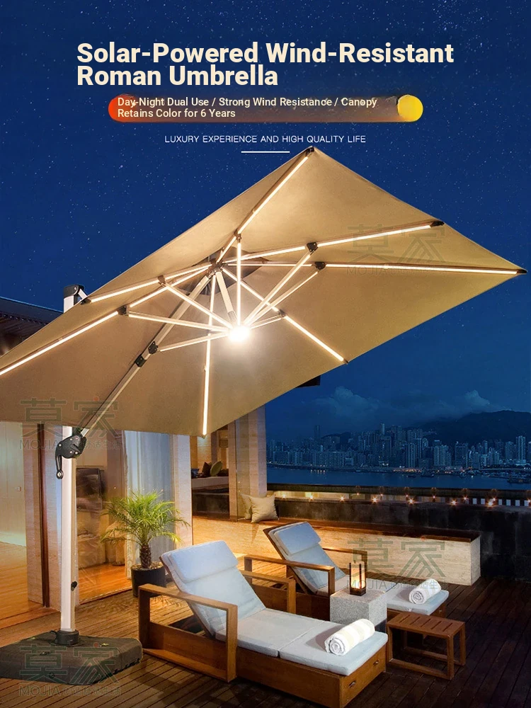Mojia Outdoor Sun Umbrella - Large Commercial Patio Umbrella with LED Lights, Perfect for Villas and Gardens, Ideal for Outdoor Events and Relaxation. Stay Cool and Stylish Under the Sun!