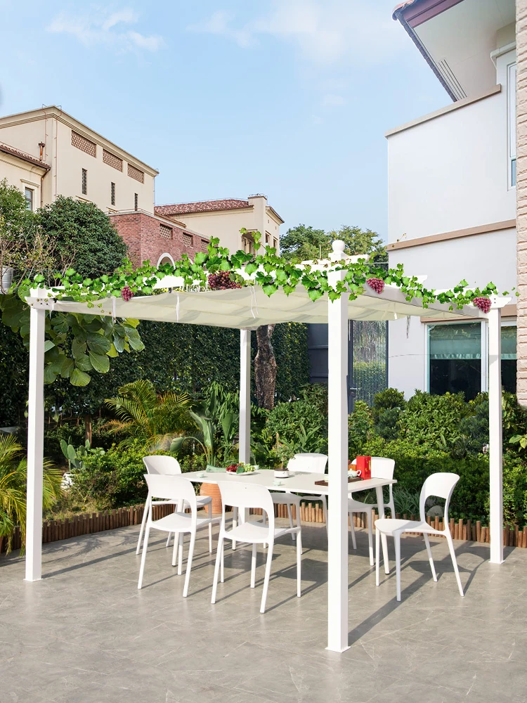 Mo Family Outdoor Villa Aluminum Alloy Grape Arbor - Stylish Pergola, Garden Trellis, Perfect for Relaxation and Rain Cover in Your Courtyard