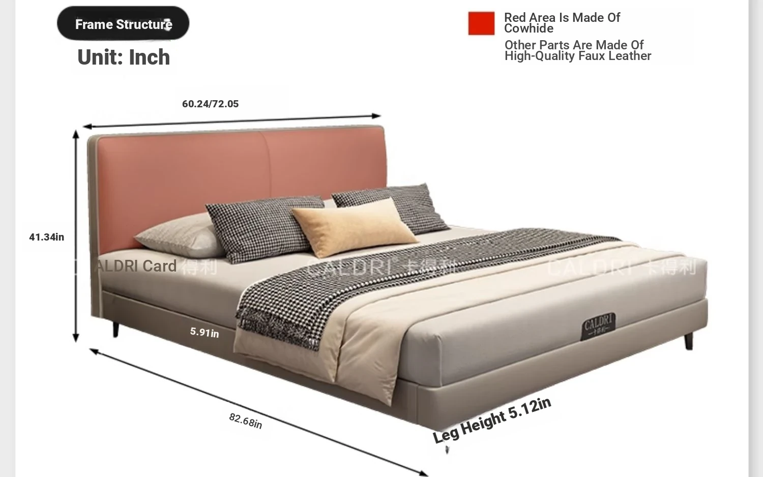 Ultimate Edition: Leather Bed [Encrypted Beech Skeleton + First Layer Calfskin] + Bedside Table * 1