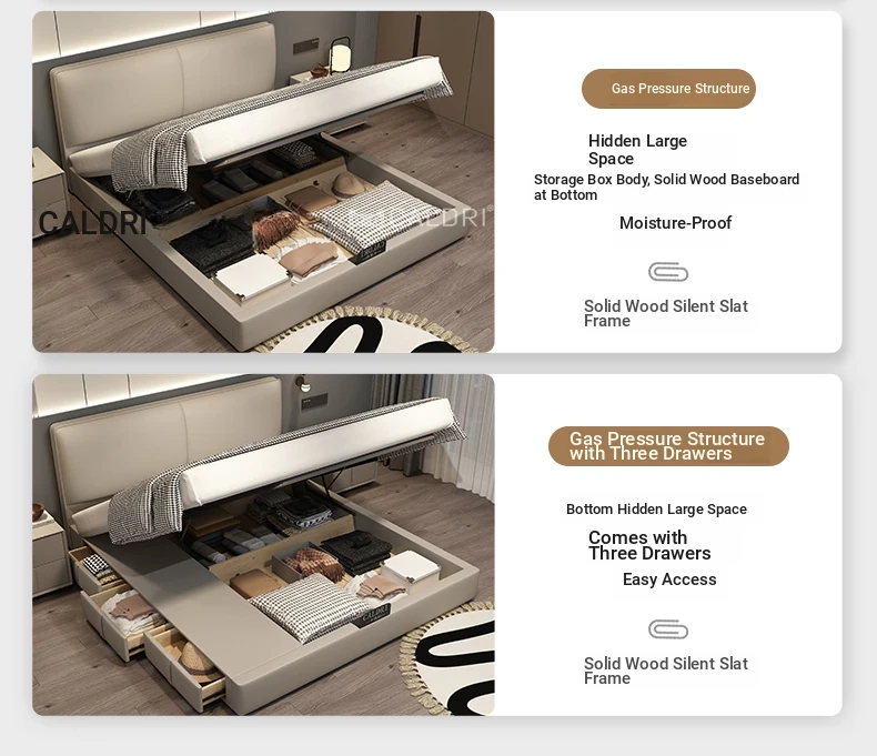 Deluxe Edition: Leather Bed [16 Rows of Steel and Wood Row Skeleton + Head Layer of Calfskin] + Bedside Table * 2