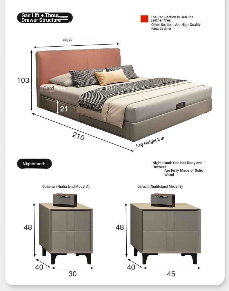 Deluxe Edition: Leather Bed [16-row Steel Wooden Row Skeleton + First Layer Calfskin] + Bedside Table * 1