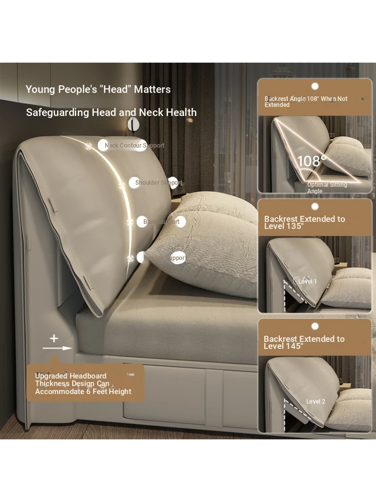Ultimate Edition: Leather Bed [Encrypted Beech Row Skeleton] + Bedside Cabinet * 1 + Seven Star Independent Spring Memory Foam Mattress