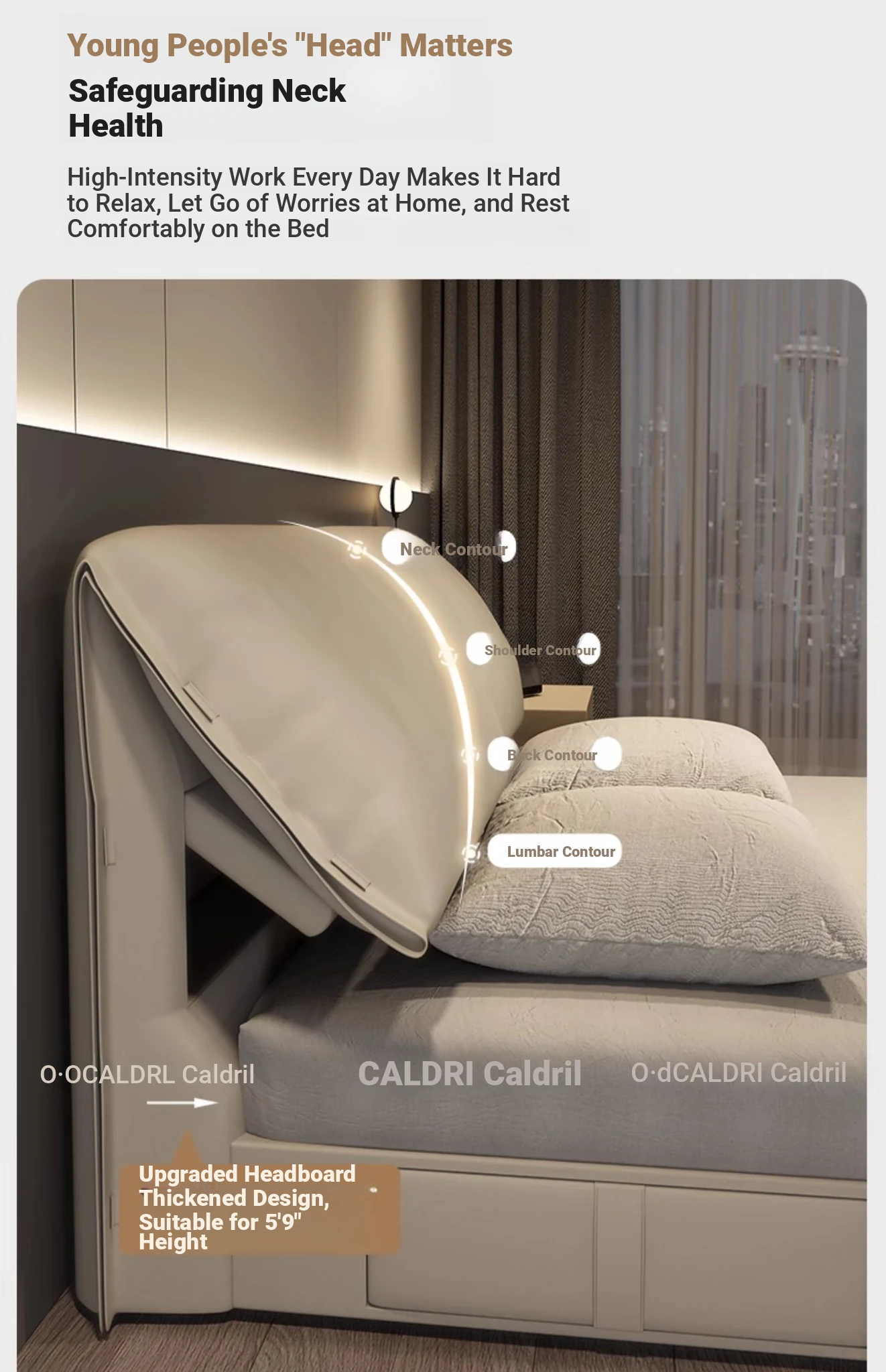 Ultimate Edition: Leather Bed [Encrypted Beech Row Skeleton + Top Calfskin] + Environmental-Friendly Jute Mattress for Ridge Protection