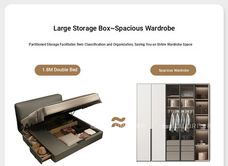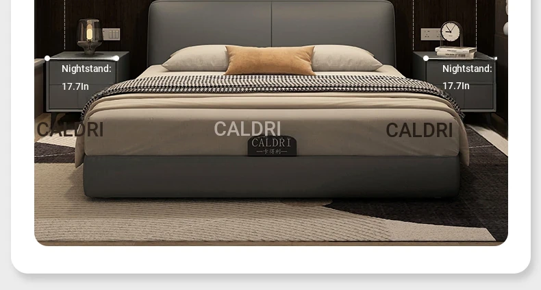 Deluxe Edition: Leather Bed [16 Rows of Steel and Wood Row Skeleton + Head Layer of Calfskin] + Bedside Table * 2
