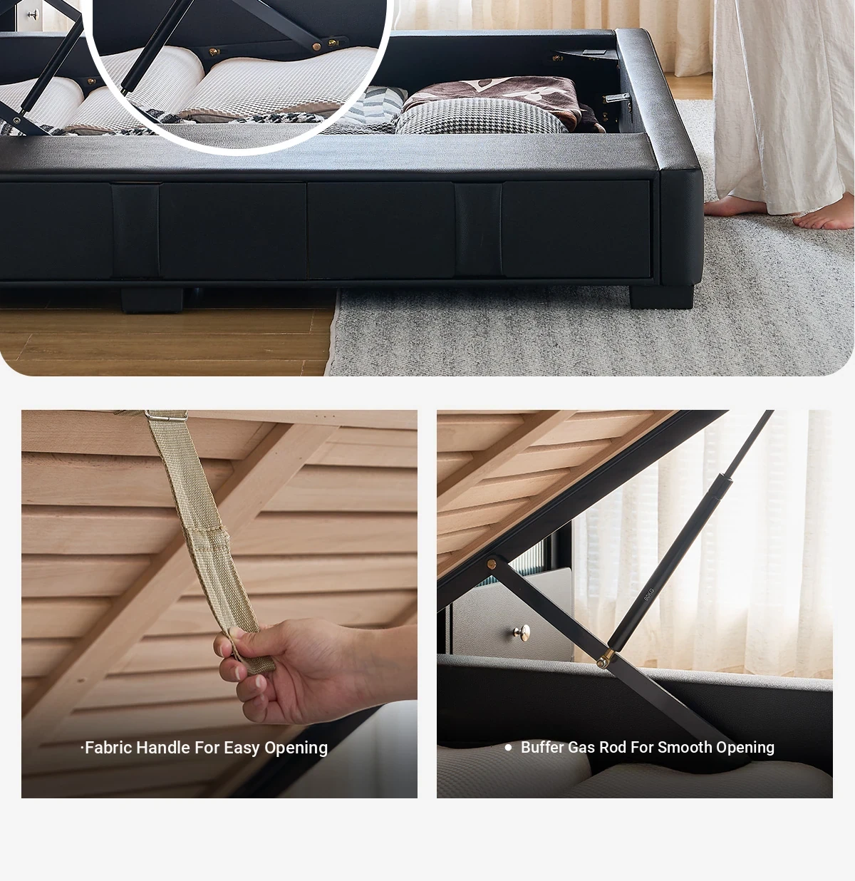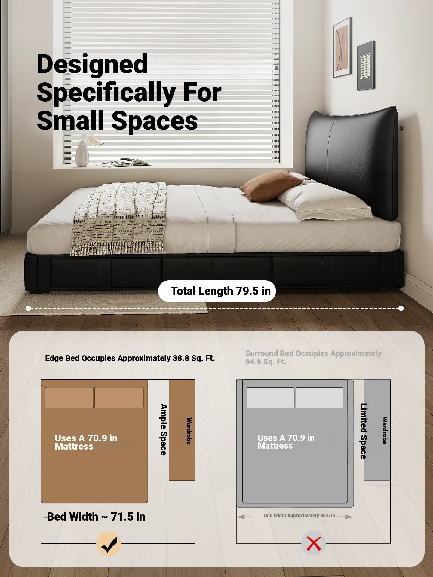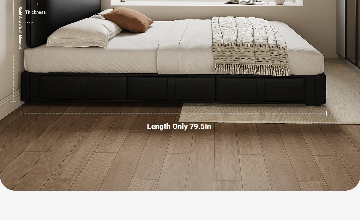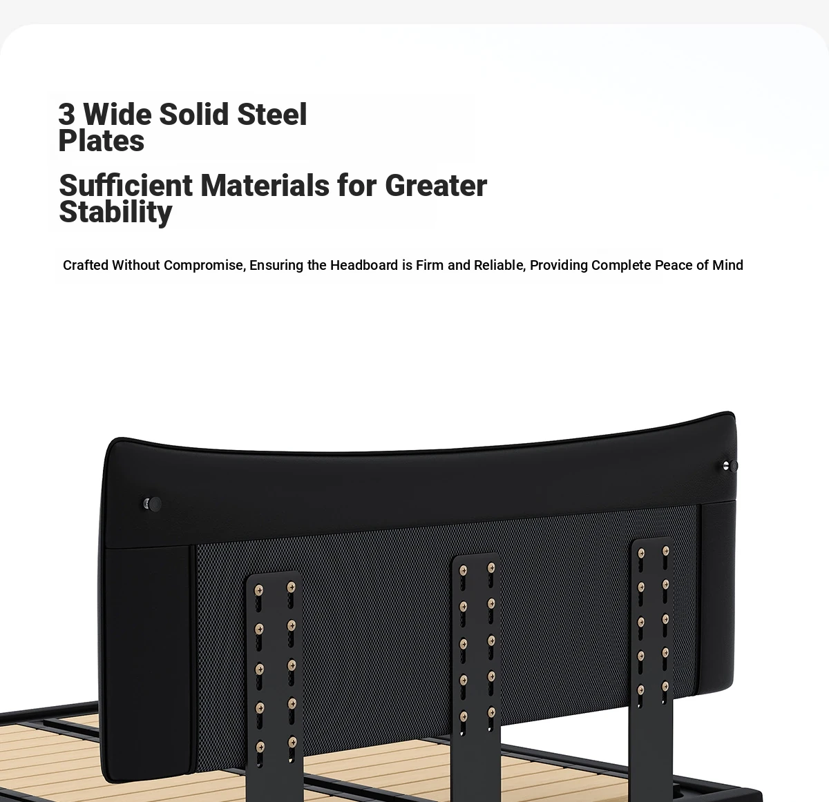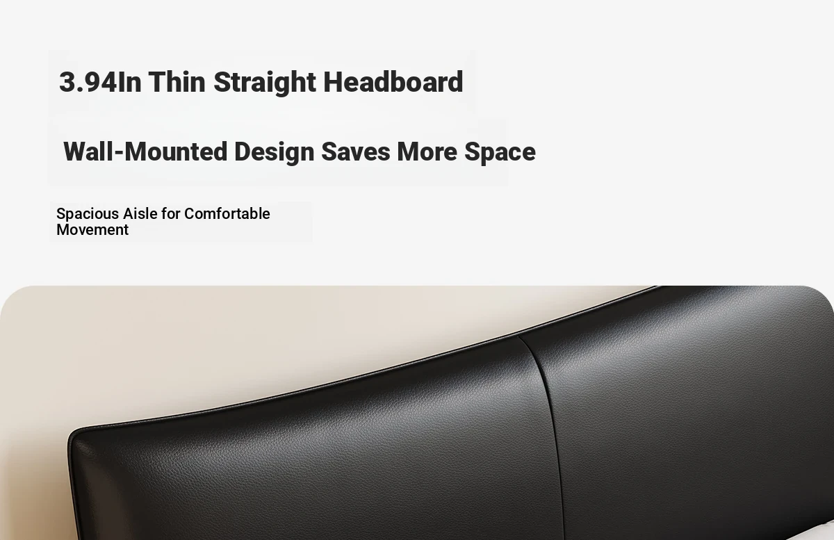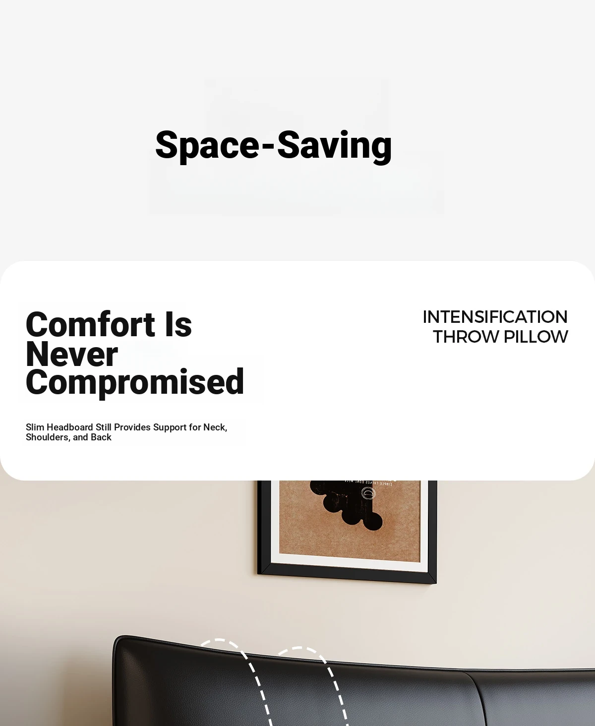 Chic Italian Style Adjustable Thin Bed with Storage - Genuine Top-Grain Leather Headboard in Black for Small Spaces - Perfect for Cozy Living!