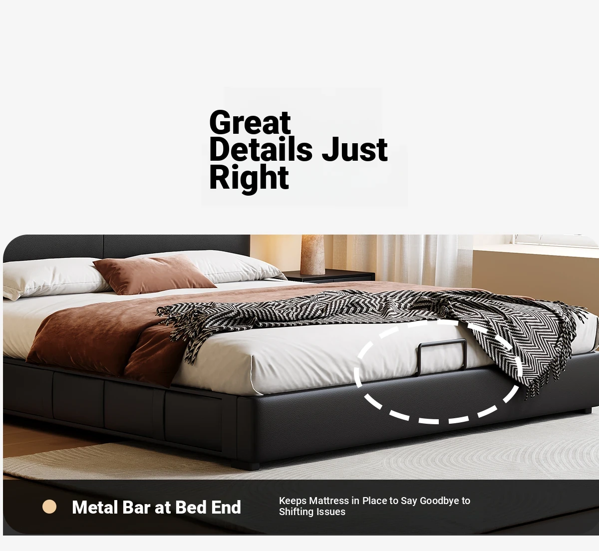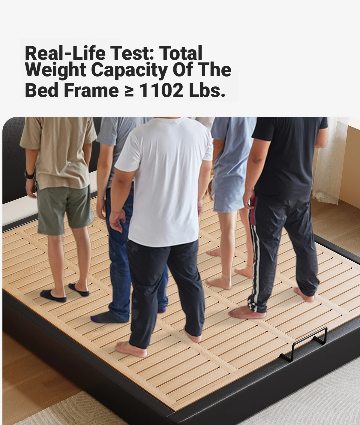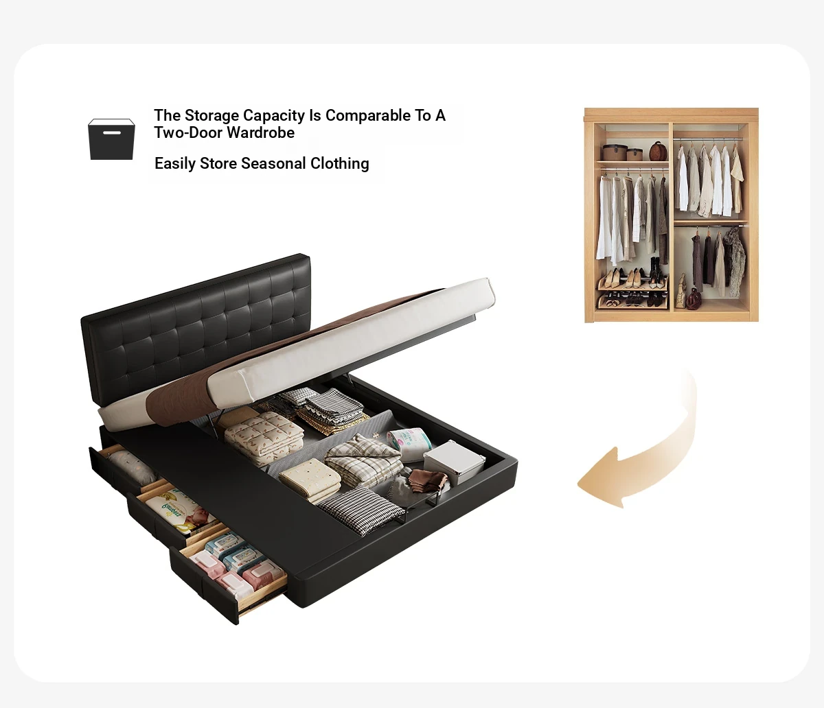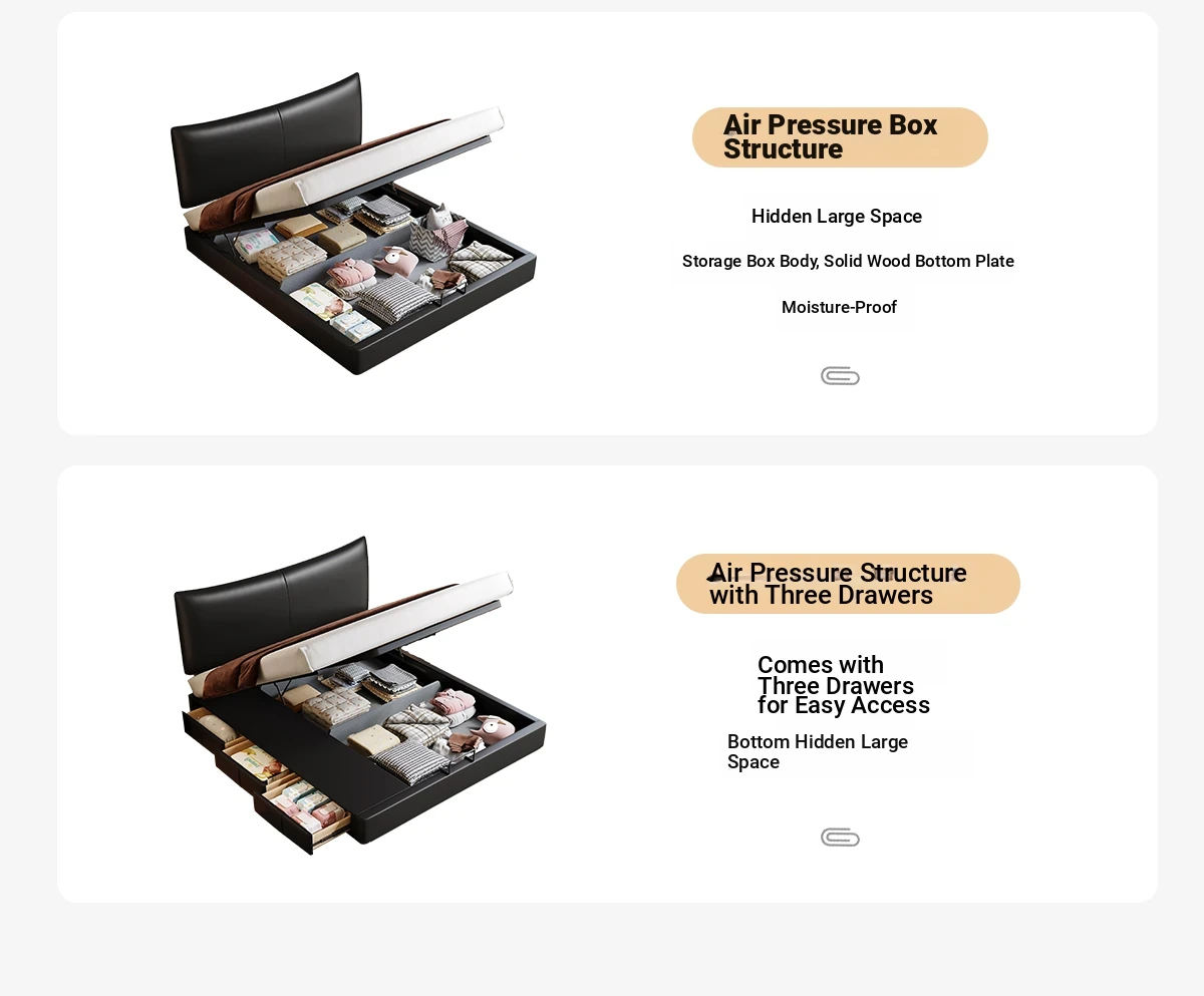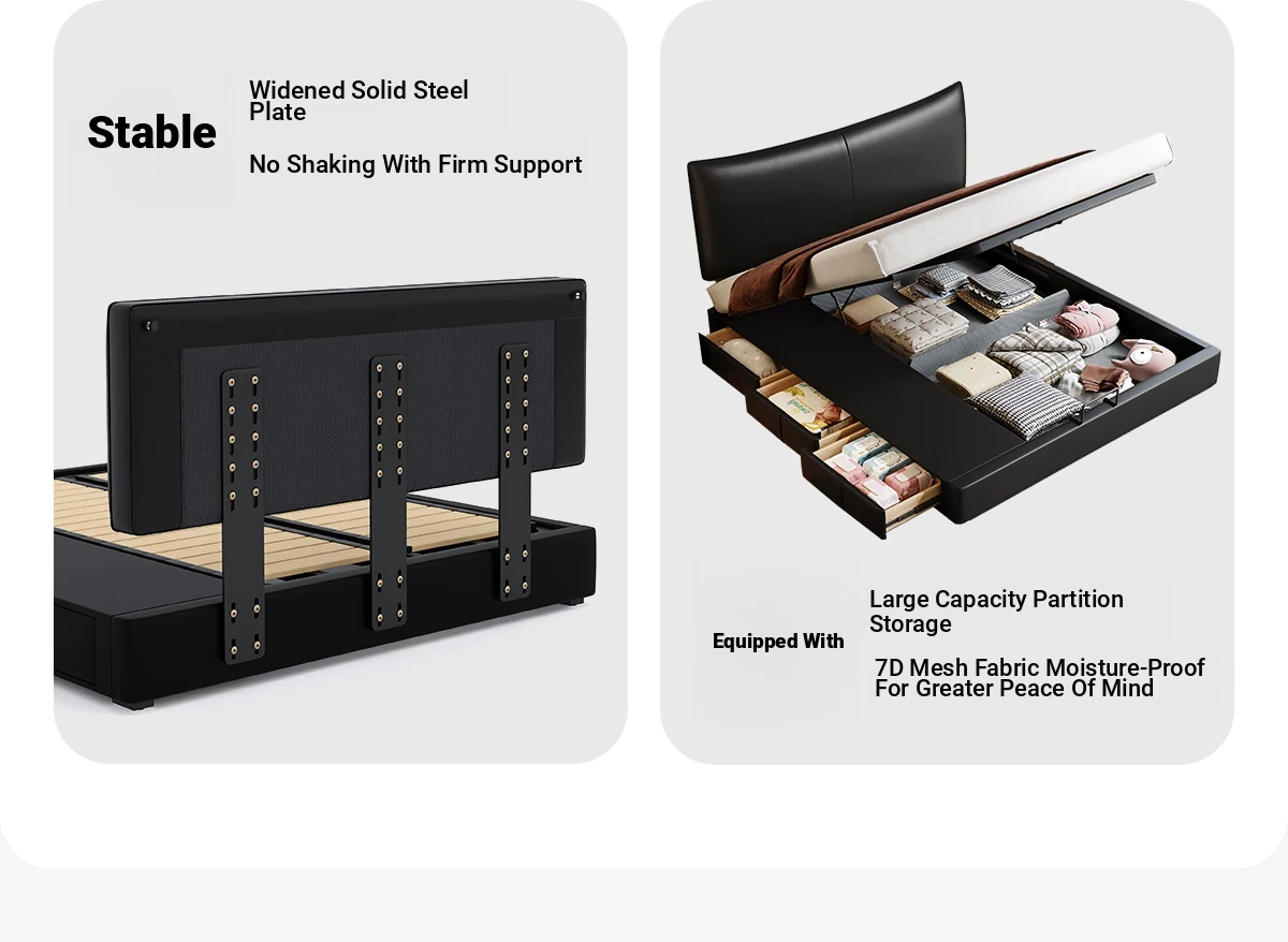 Chic Italian Style Adjustable Thin Bed with Storage - Genuine Top-Grain Leather Headboard in Black for Small Spaces - Perfect for Cozy Living!