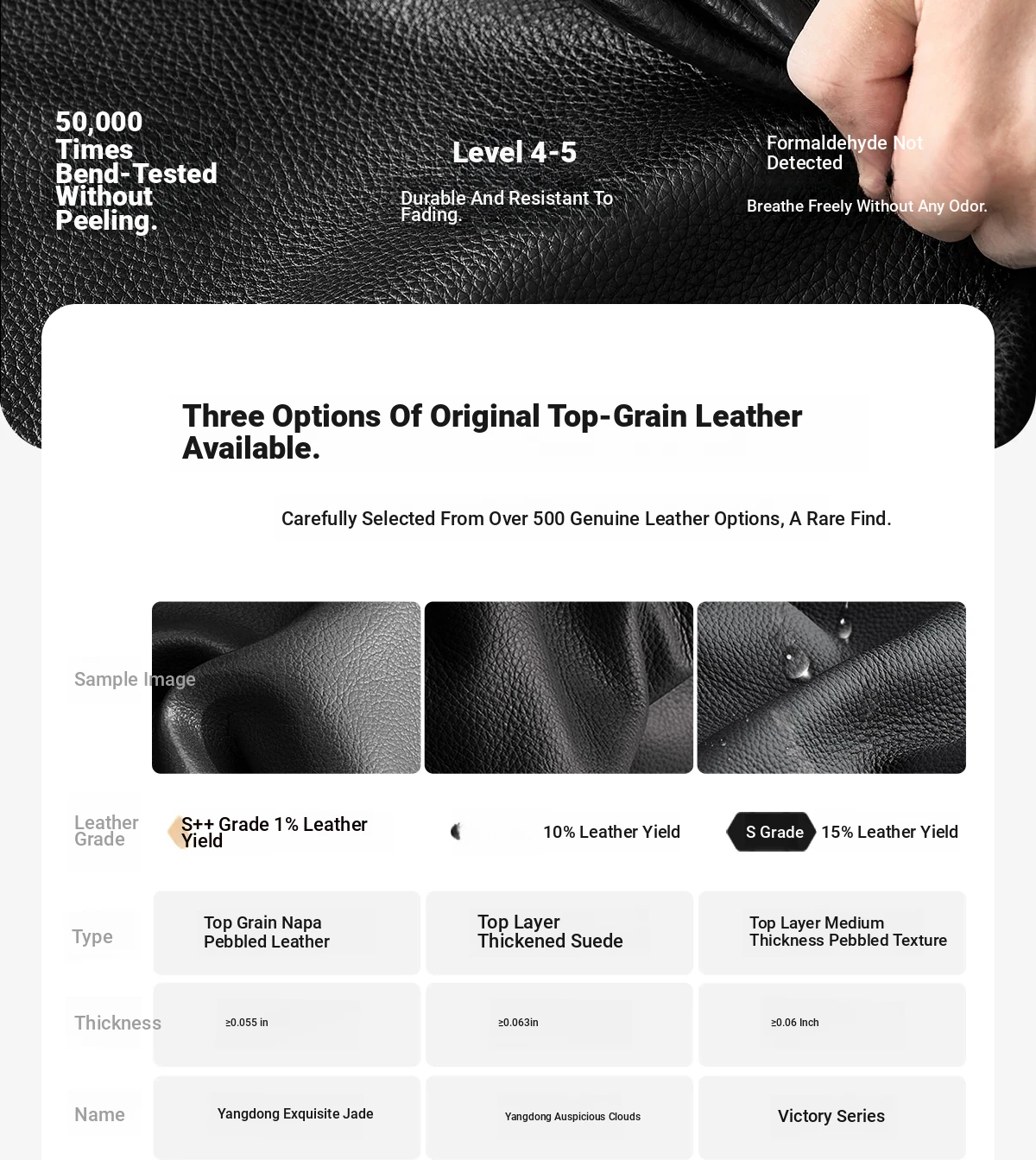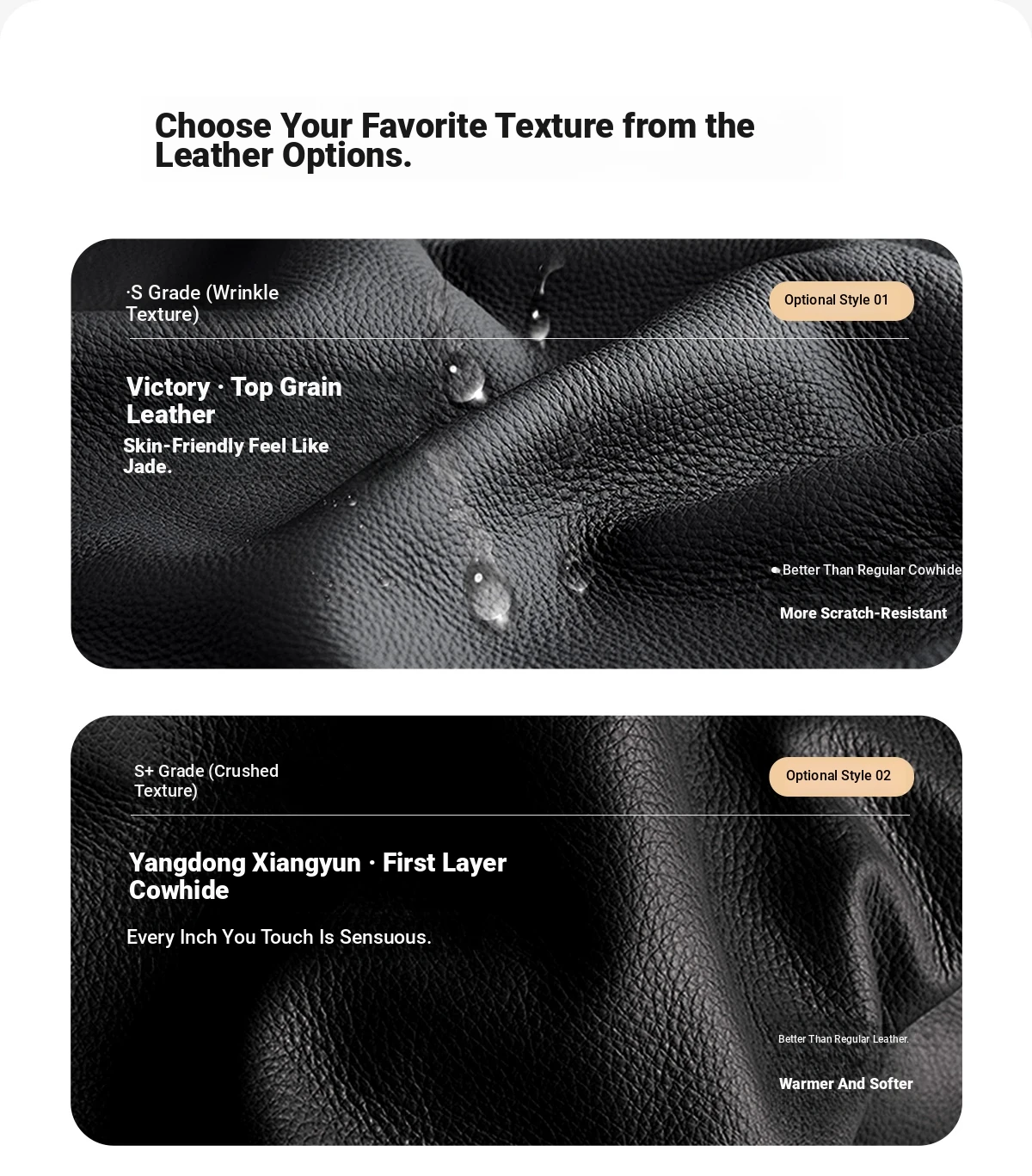 [Three Types of Native First-Layer Cowhide] Desheng Pattern (Scratch-Resistant) | Xiangyun Pattern (Warm and Moist) | Linglong Jade Napa (Delicate)