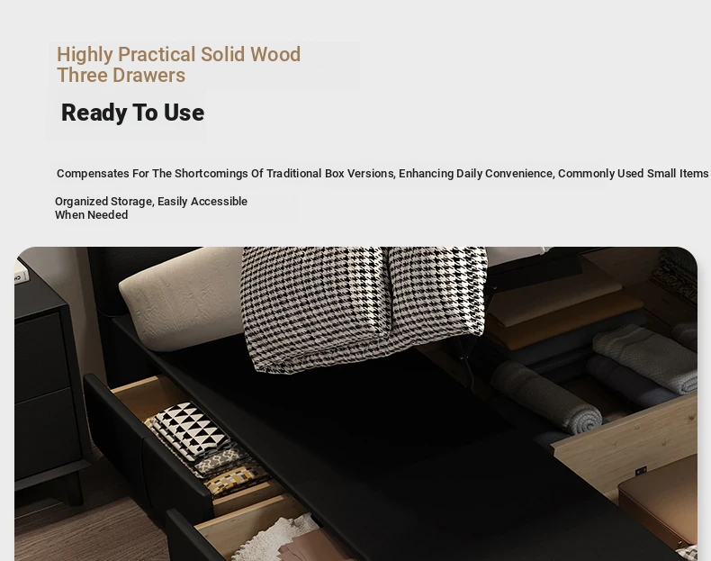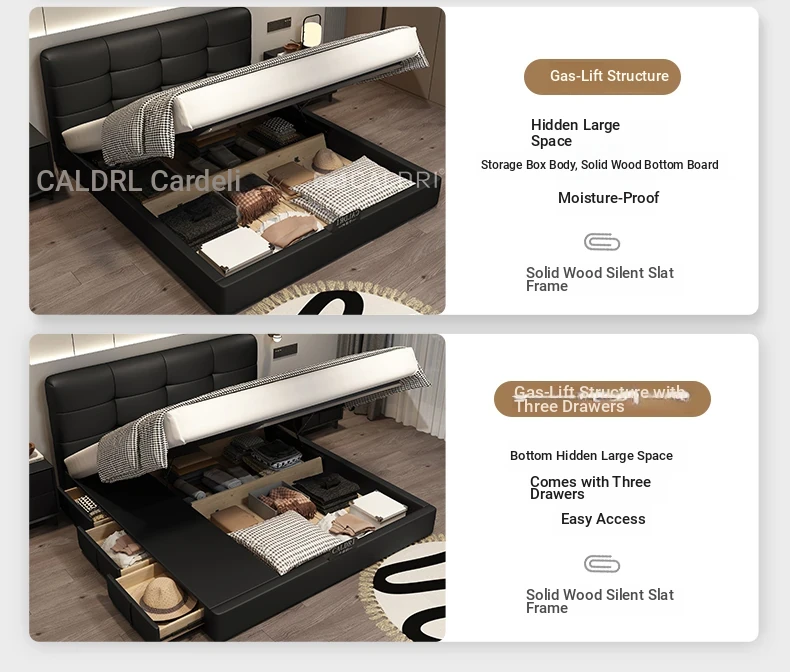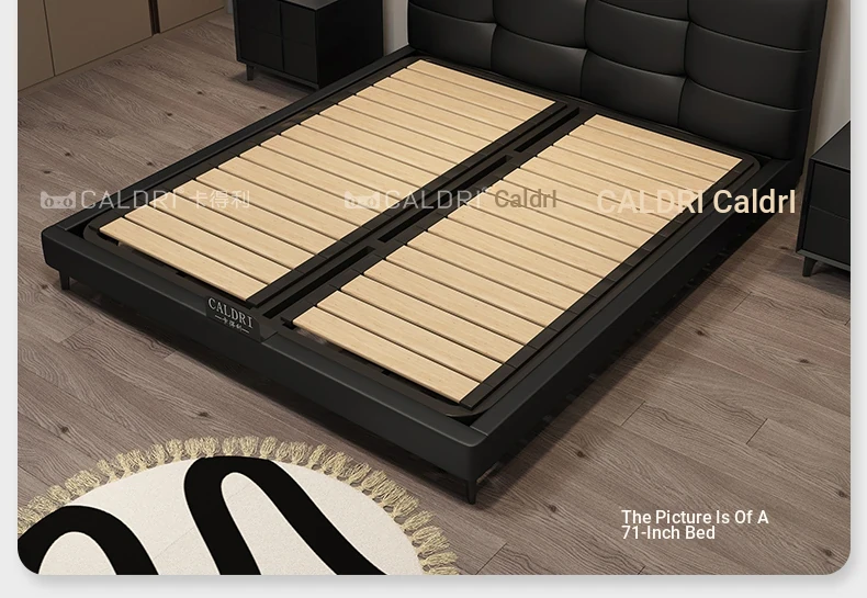 Deluxe Edition: Leather Bed [16 Rows of Steel and Wood Row Skeleton + Head Layer of Calfskin] + Bedside Table * 2