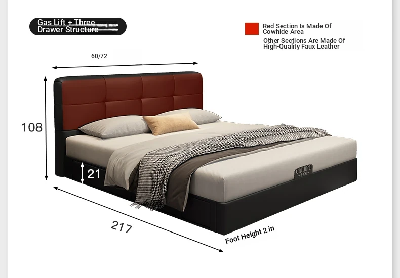 Deluxe Edition: Leather Bed [16-row Steel Wooden Row Skeleton + First Layer Calfskin] + Bedside Table * 1