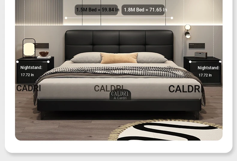 Ultimate Edition: Leather Bed [Encrypted Beech Skeleton + Head Calfskin] + Bedside Table * 2