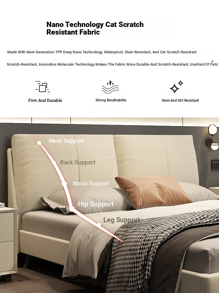 Deluxe Edition: Cat Scratch Cloth Bed [16 Rows of Steel and Wood Row Skeleton + Five-Prevention Cat Scratch Cloth] + Bedside Table * 1 + Five-Star Independent Spring Latex Mattress