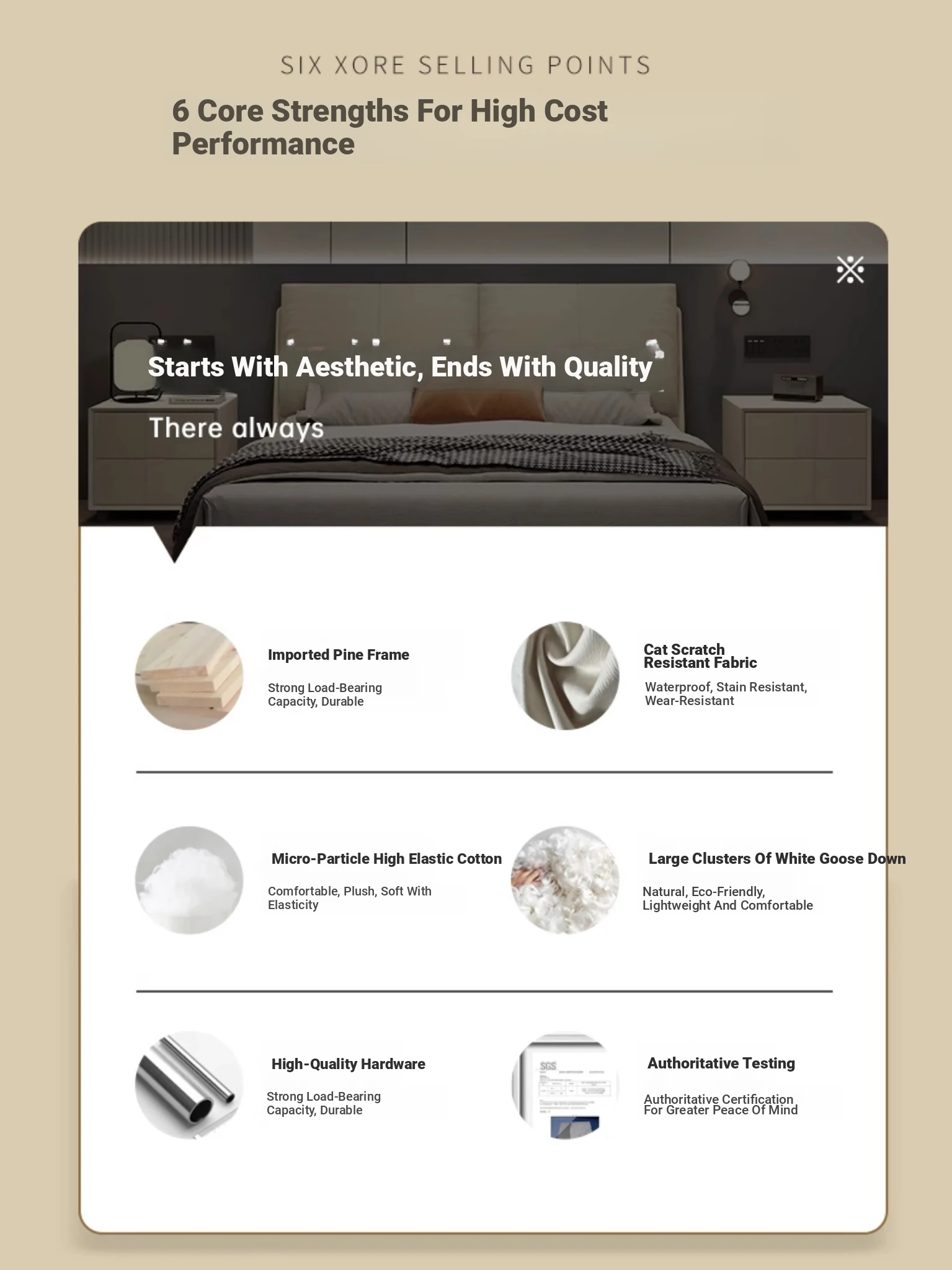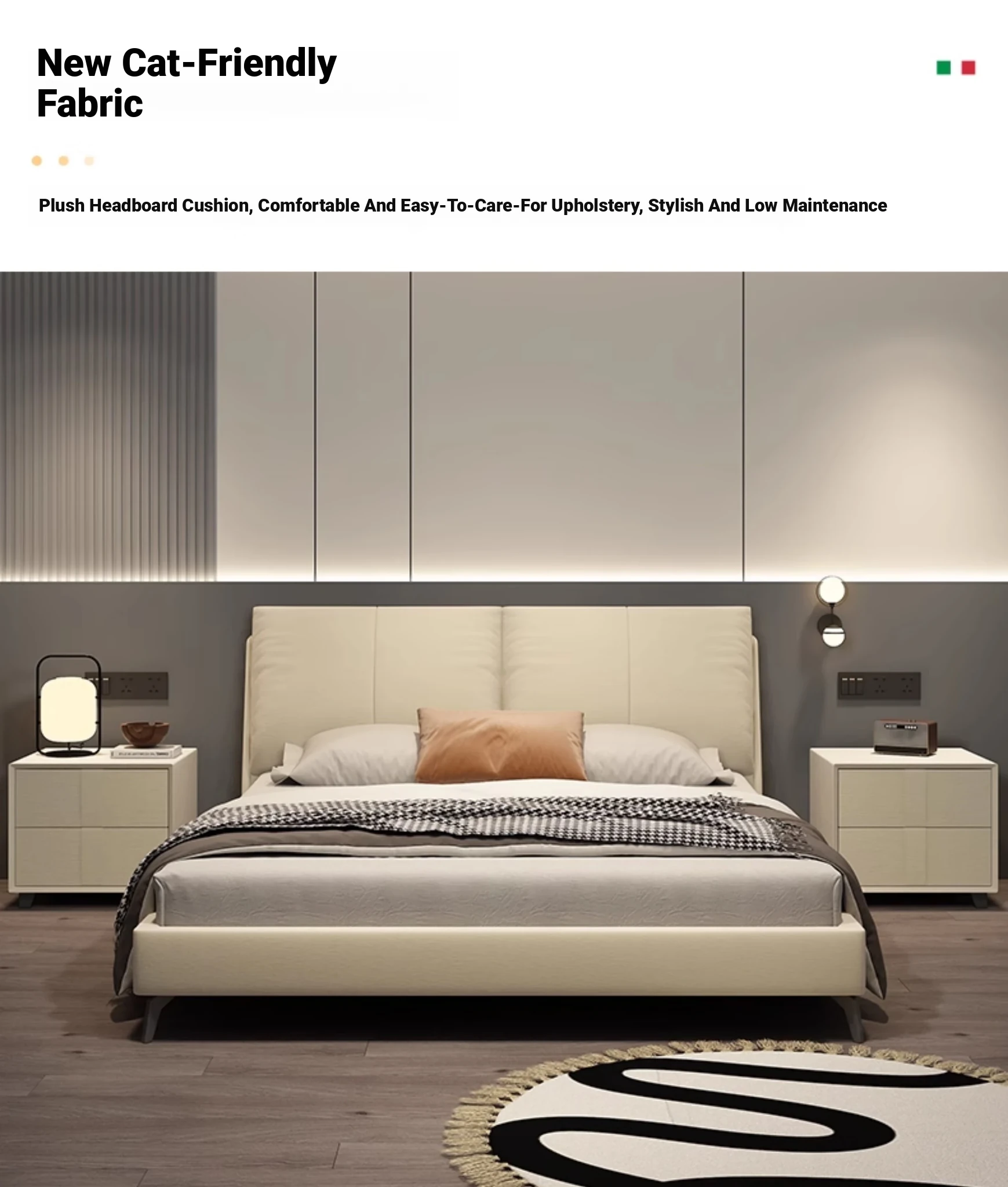 Ultimate Edition: Cat Scratch Cloth Bed [Encrypted Beech Row Frame + Five-prevention Cat Scratch Cloth] + Bedside Table * 2 + Five-star Independent Spring Latex Mattress