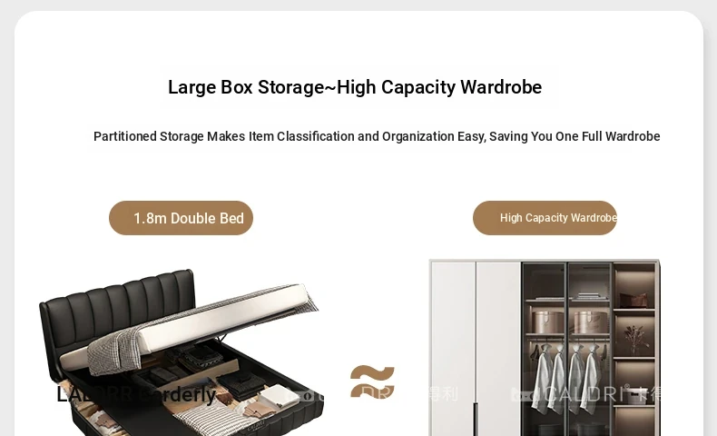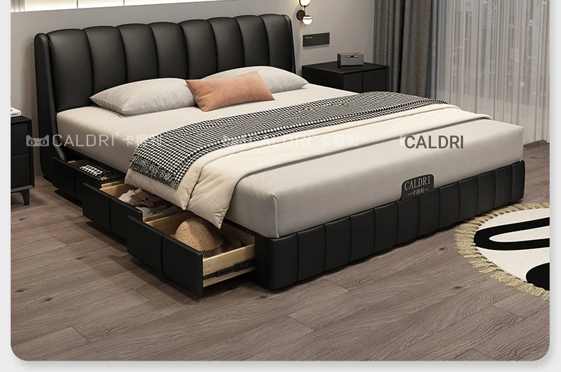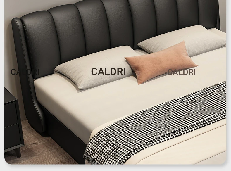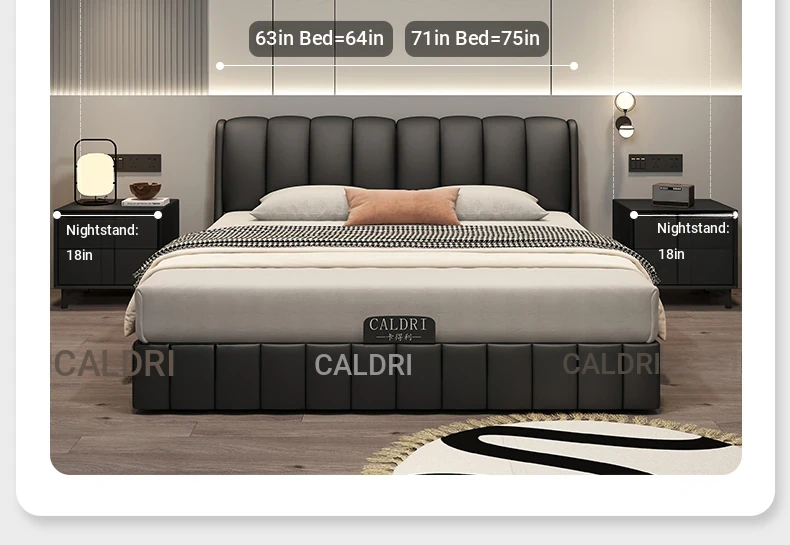 Deluxe Edition: Leather Bed [16 Rows of Steel and Wood Row Skeleton + Head Layer of Calfskin] + Bedside Table * 2