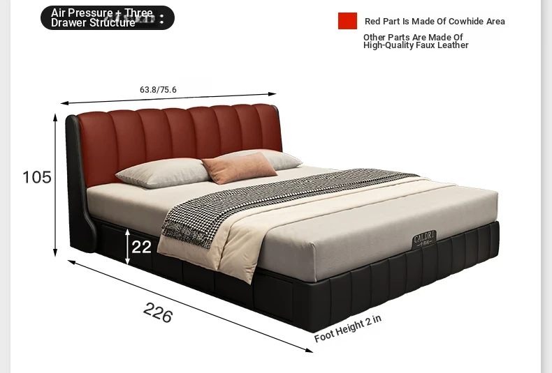 Deluxe Edition: Leather Bed [16-row Steel Wooden Row Skeleton + First Layer Calfskin] + Bedside Table * 1