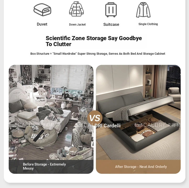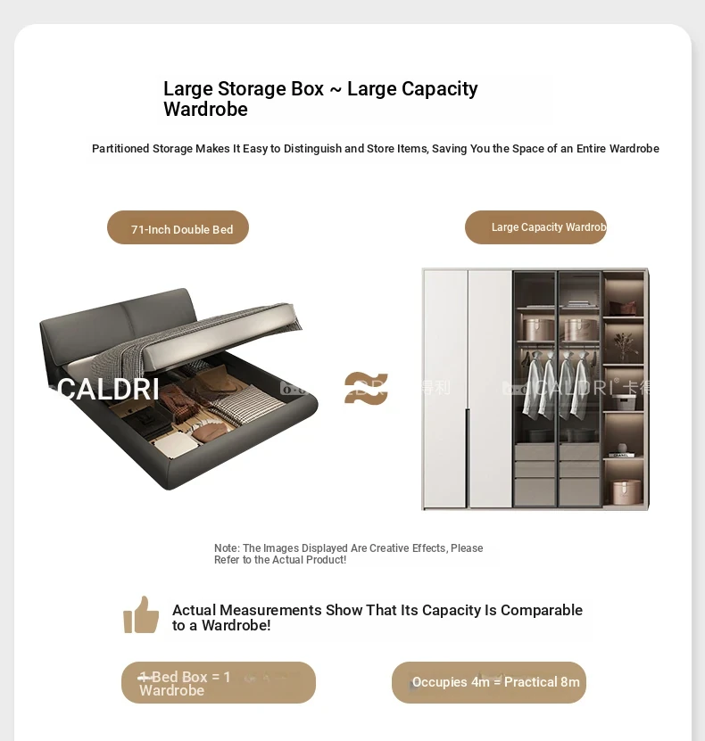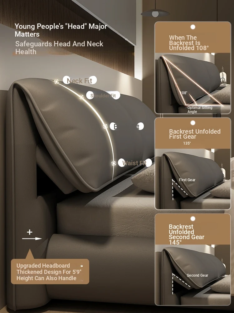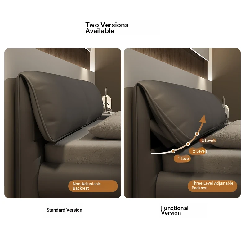Deluxe functional version: leather bed [16 rows of steel and wood row skeleton + first layer of calf leather] + seven-star Independent spring memory cotton mattress