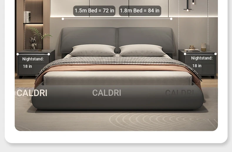 Deluxe functional version: leather bed [16 rows of steel and wood row skeleton + first layer calf leather] + bedside table * 1