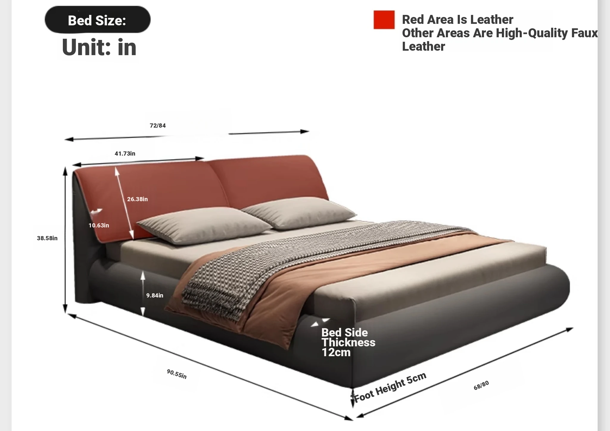 Hao Hua Edition: Top-layer Cowhide Leather Bed [Encrypted thickened Steel Wooden Row Skeleton] + Jute Mattress for Ridge Protection