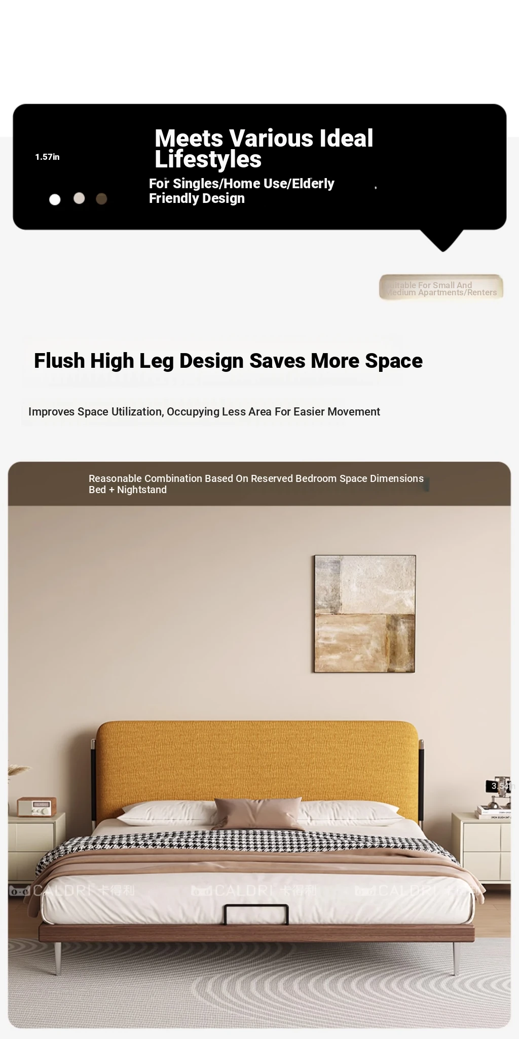 Flagship Version: Chenille Bed [Thick Beech Frame] + Bedside Table *1