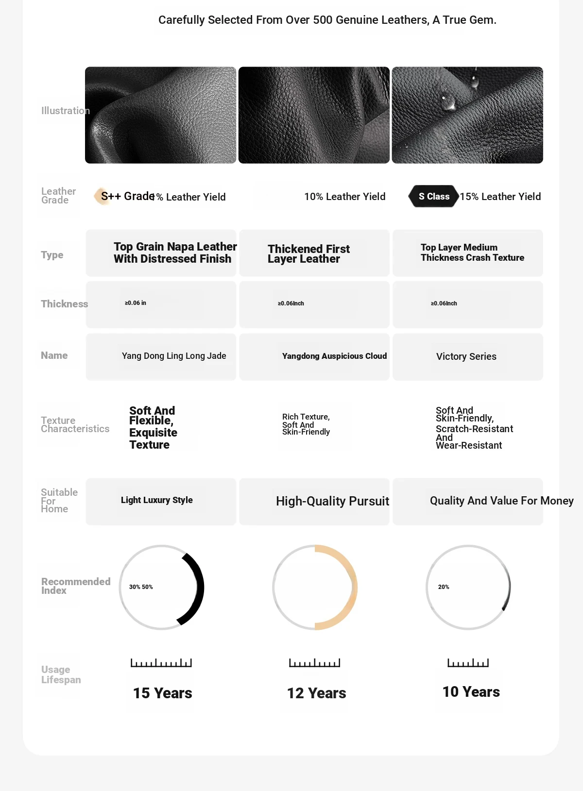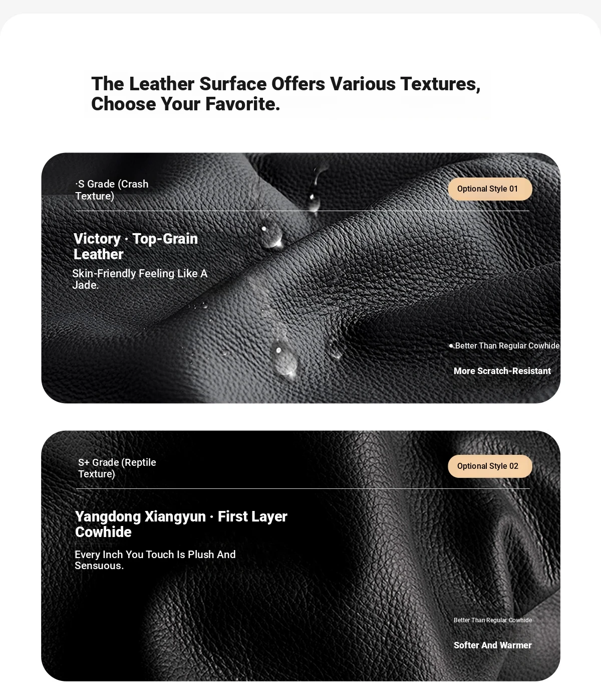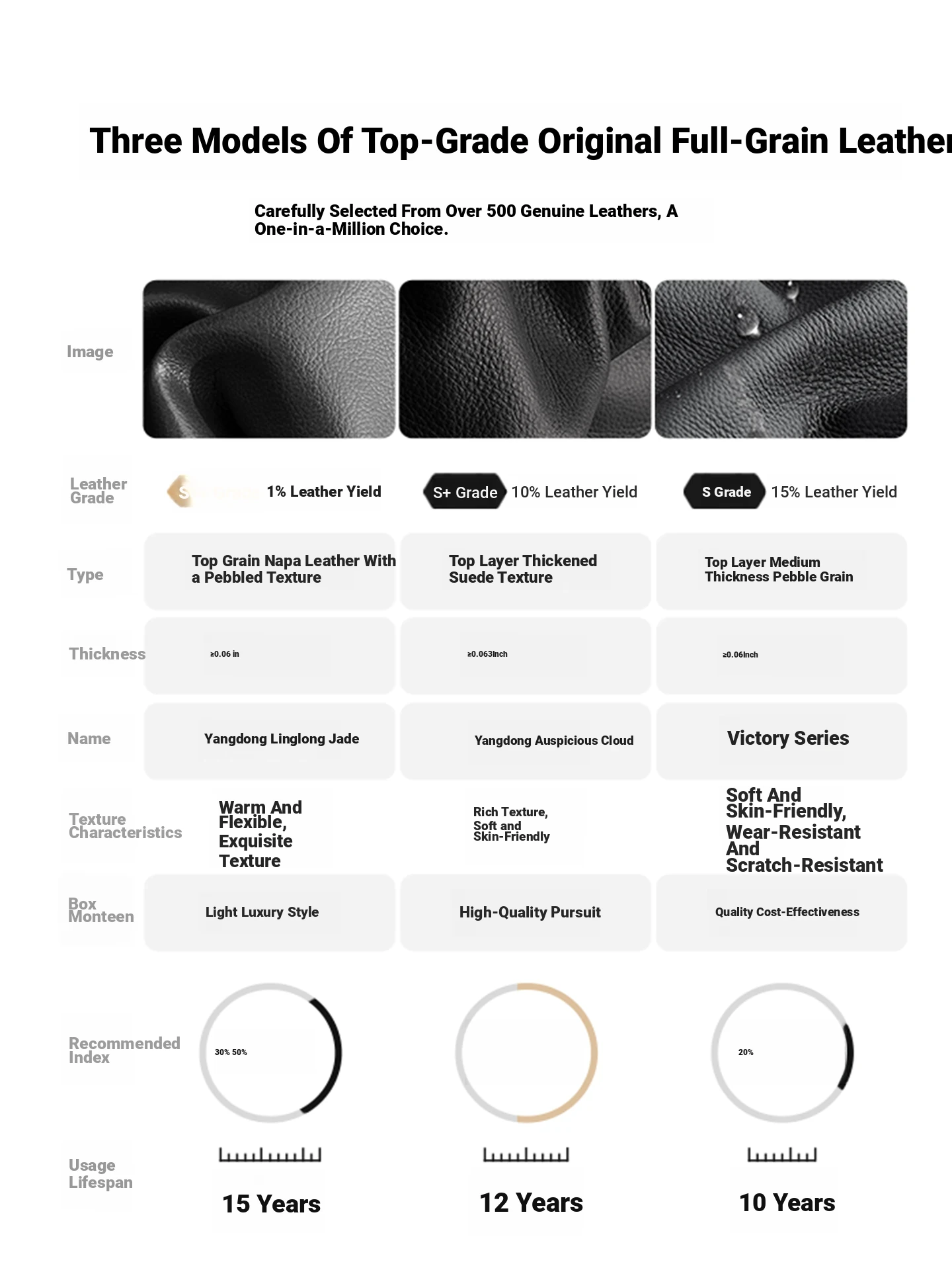 [Three Types of Native First-Layer Cowhide] Desheng Pattern (Scratch-Resistant) | Xiangyun Pattern (Warm and Moist) | Linglong Jade Napa (Delicate)