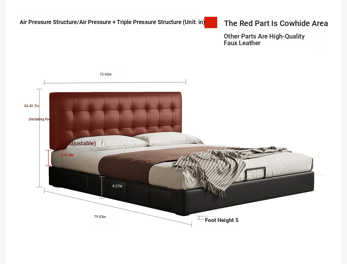 Exclusive Edition: Yangdong Linglong Jade - Lightly Dropped Napa First Layer Cowhide [Encrypted Beech Frame] Single Bed