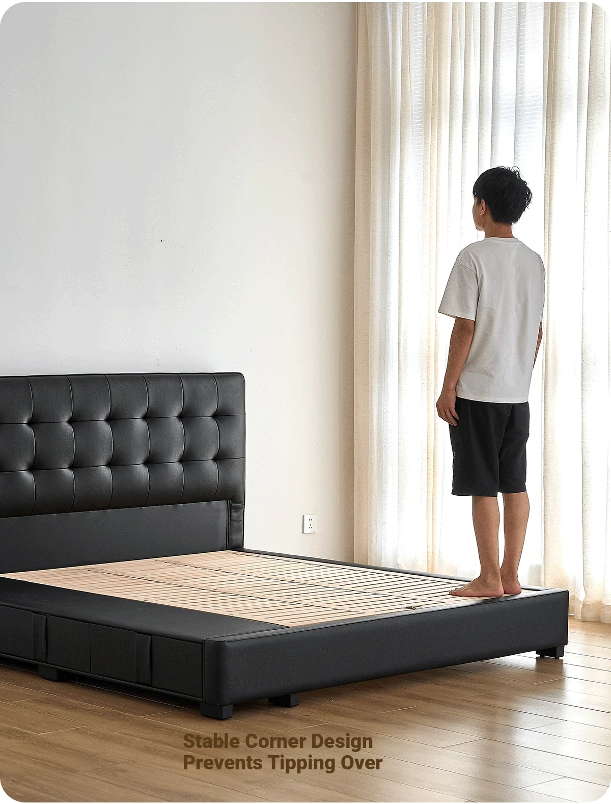 Exclusive Edition: Yangdong Linglong Jade - Lightly Dropped Napa First Layer Cowhide [16 Rows of Steel and Wooden Frames] Single Bed + Seven Star Memory Foam Mattress