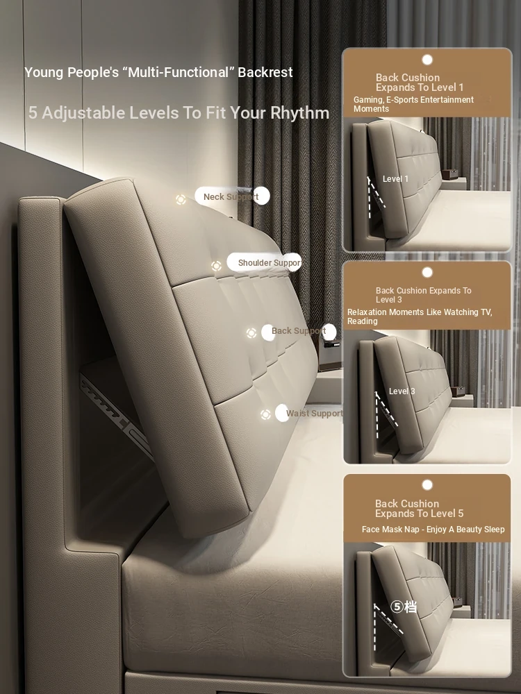 Ultimate Edition: Leather Bed [Encrypted Beech Row Skeleton] + Bedside Cabinet * 1 + Seven Star Independent Spring Memory Foam Mattress