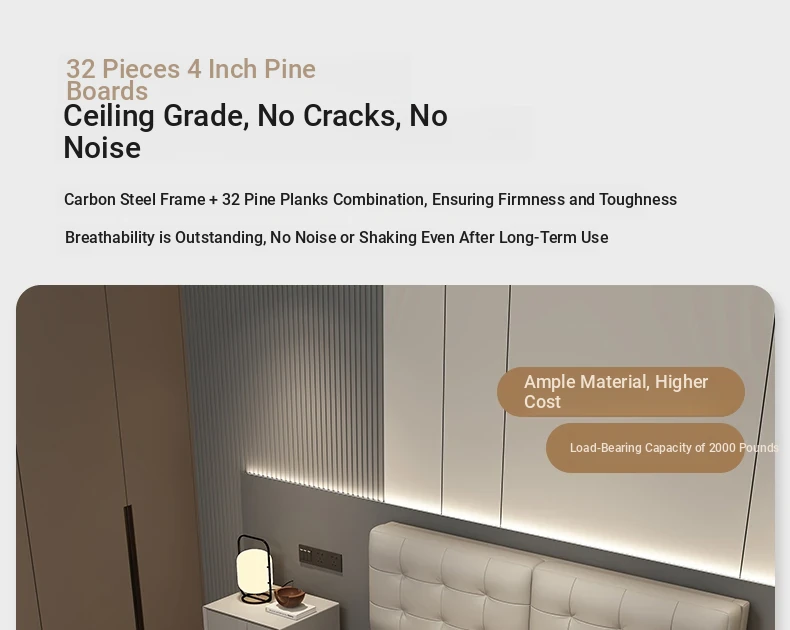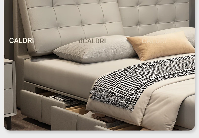 Deluxe Edition: Leather Bed [16-row Steel Wooden Row Skeleton + First Layer Calfskin] + Bedside Table * 1