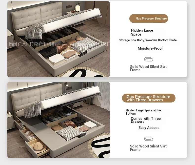 Deluxe Edition: Leather Bed [16 Rows of Steel and Wood Row Skeleton + Head Layer of Calfskin] + Bedside Table * 2