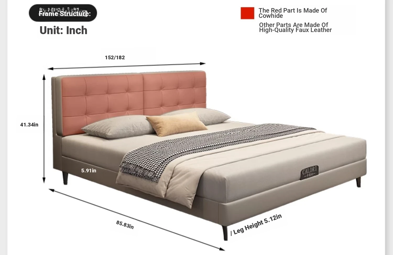 Ultimate Edition: Leather Bed [Encrypted Beech Skeleton + First Layer Calfskin] + Bedside Table * 1