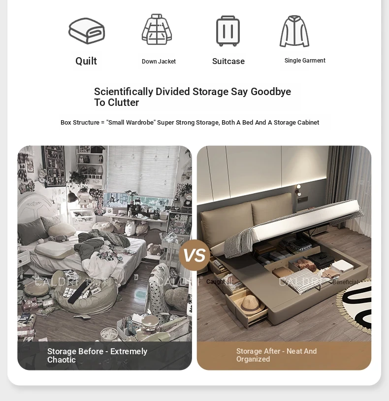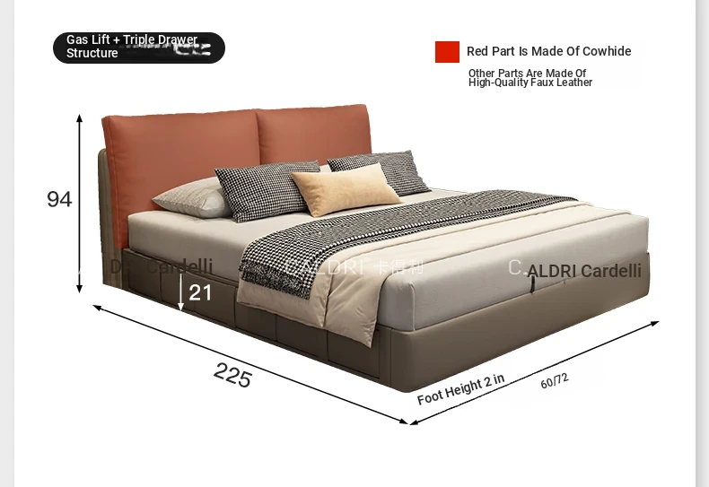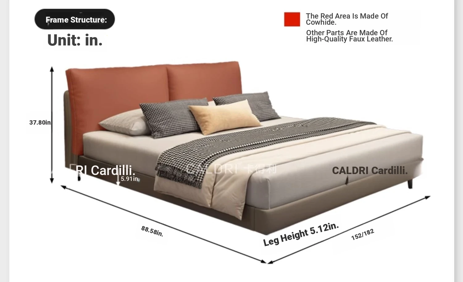 Ultimate Edition: Leather Bed [Encrypted Beech Skeleton + First Layer Calfskin] + Bedside Table * 1
