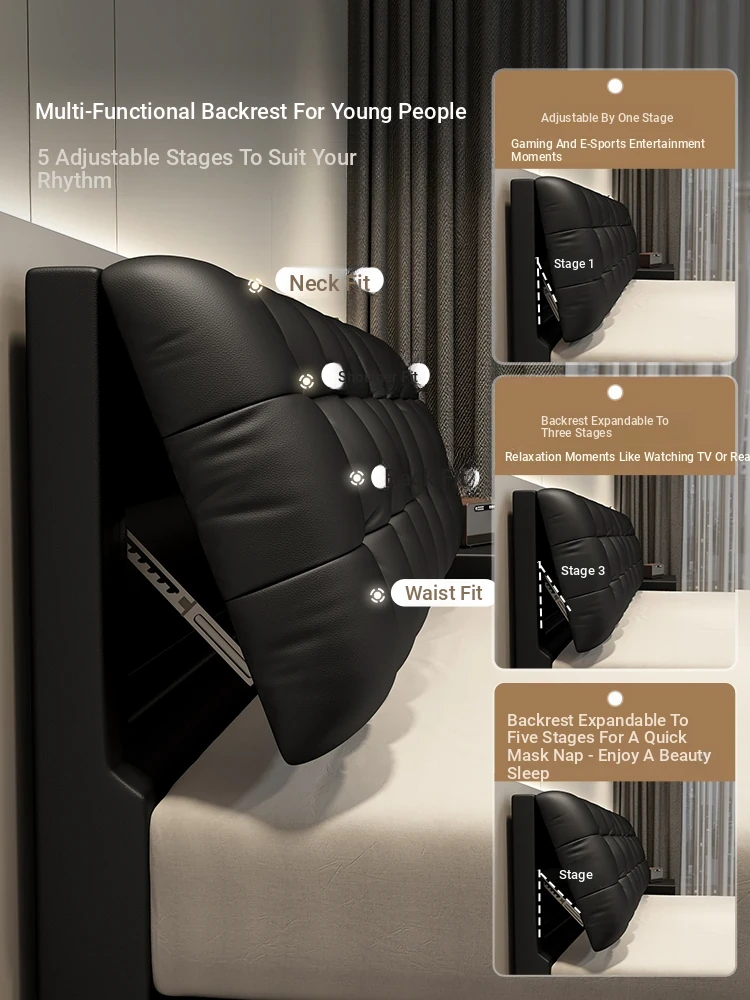 Ultimate Edition: Leather Bed [Encrypted Beech Row Skeleton] + Bedside Cabinet * 1 + Seven Star Independent Spring Memory Foam Mattress