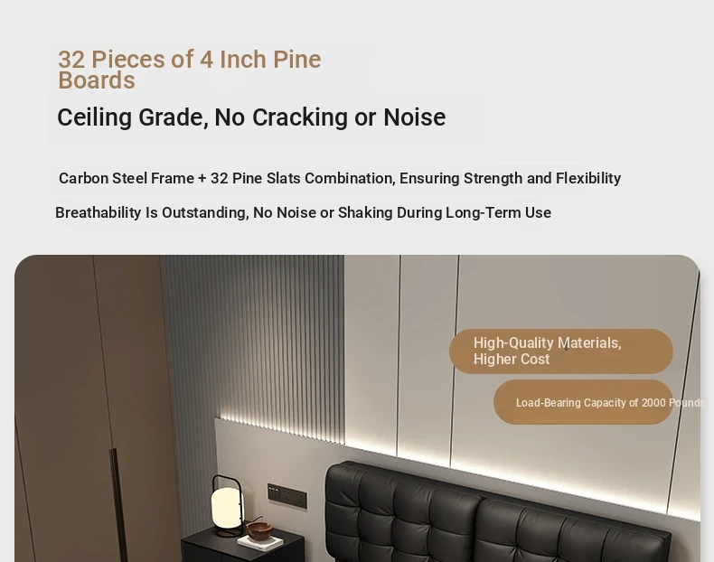 Deluxe Edition: Leather Bed [16-row Steel Wooden Row Skeleton + First Layer Calfskin] + Bedside Table * 1