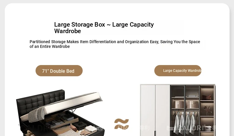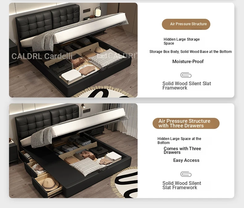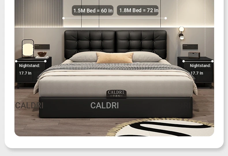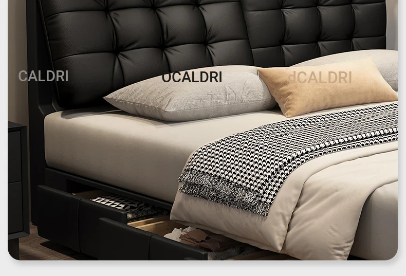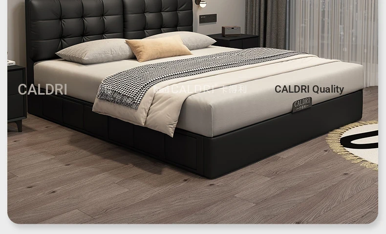 Deluxe Edition: Leather Bed [16 Rows of Steel and Wood Row Skeleton + Head Layer of Calfskin] + Bedside Table * 2