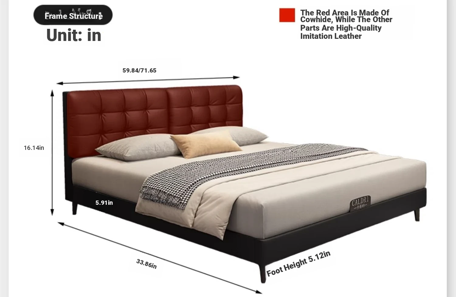 Ultimate Edition: Leather Bed [Encrypted Beech Skeleton + First Layer Calfskin] + Bedside Table * 1