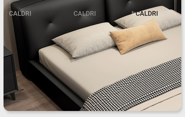 Deluxe Edition: Leather Bed [16 Rows of Steel and Wood Row Skeleton + Head Layer of Calfskin] + Bedside Table * 2
