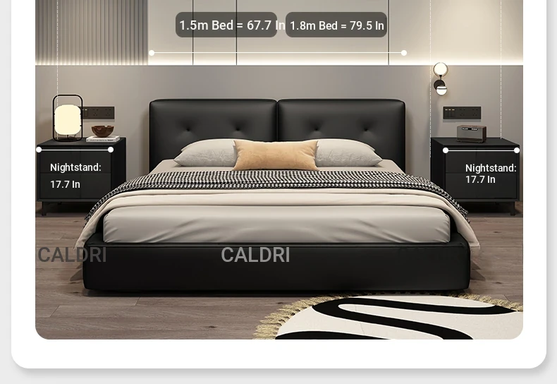 Ultimate Edition: Leather Bed [Encrypted Beech Skeleton + Head Calfskin] + Bedside Table * 2