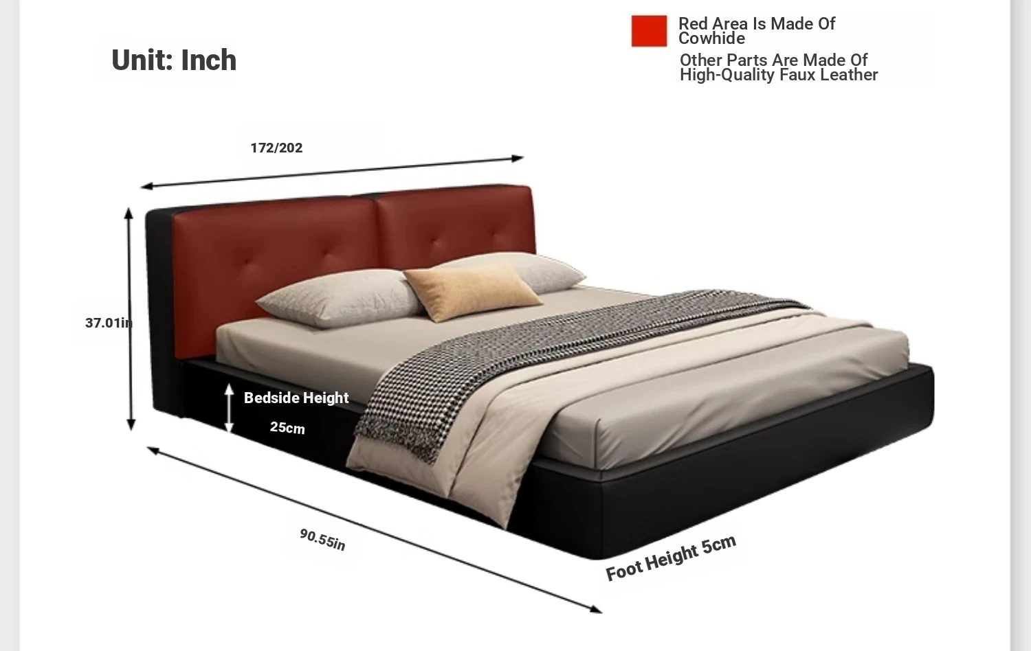 Deluxe Edition: Leather Bed [16-row Steel Wooden Row Skeleton + First Layer Calfskin] + Bedside Table * 1