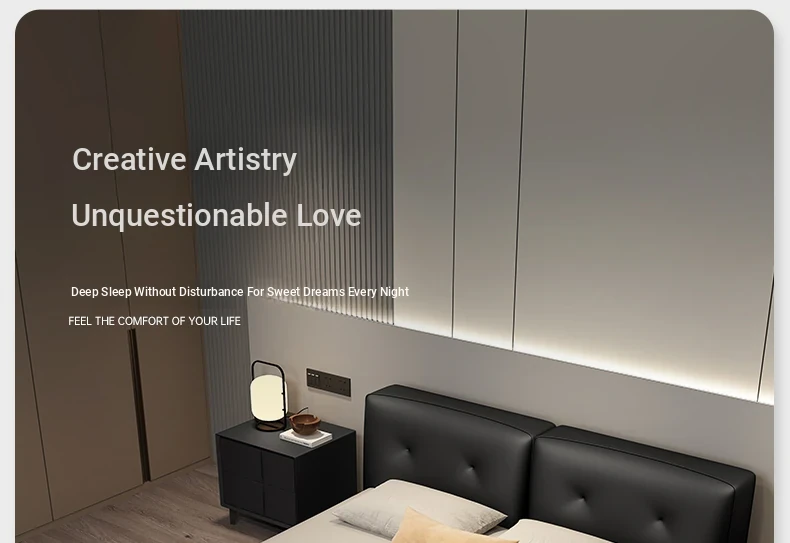 Ultimate Edition: Leather Bed [Encrypted Beech Skeleton + First Layer Calfskin] + Bedside Table * 1
