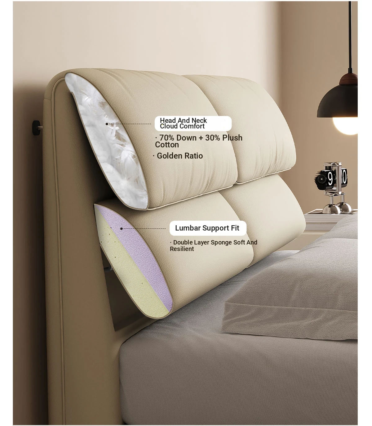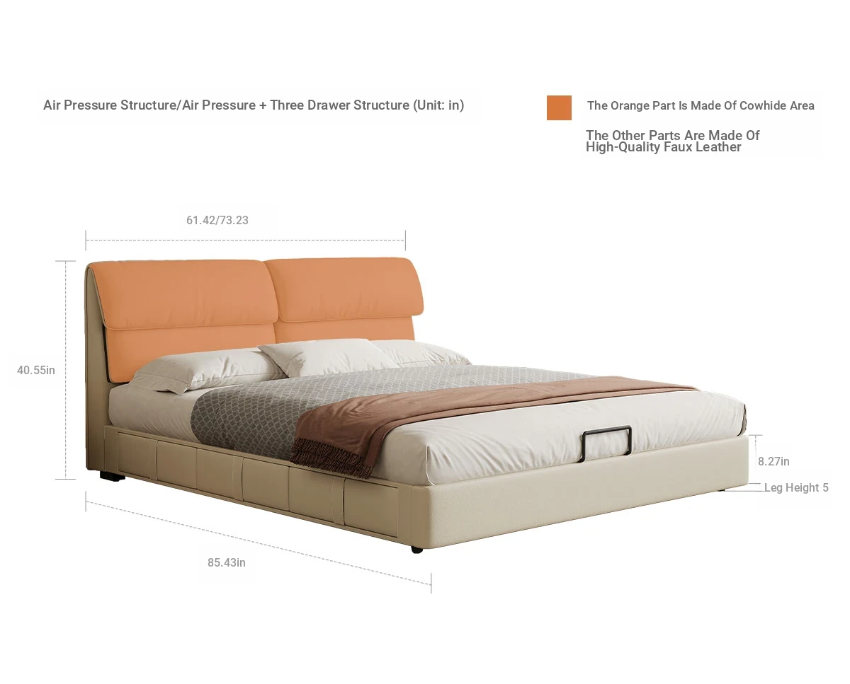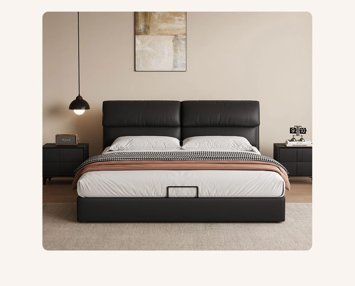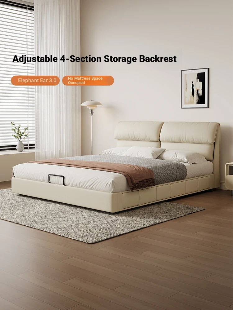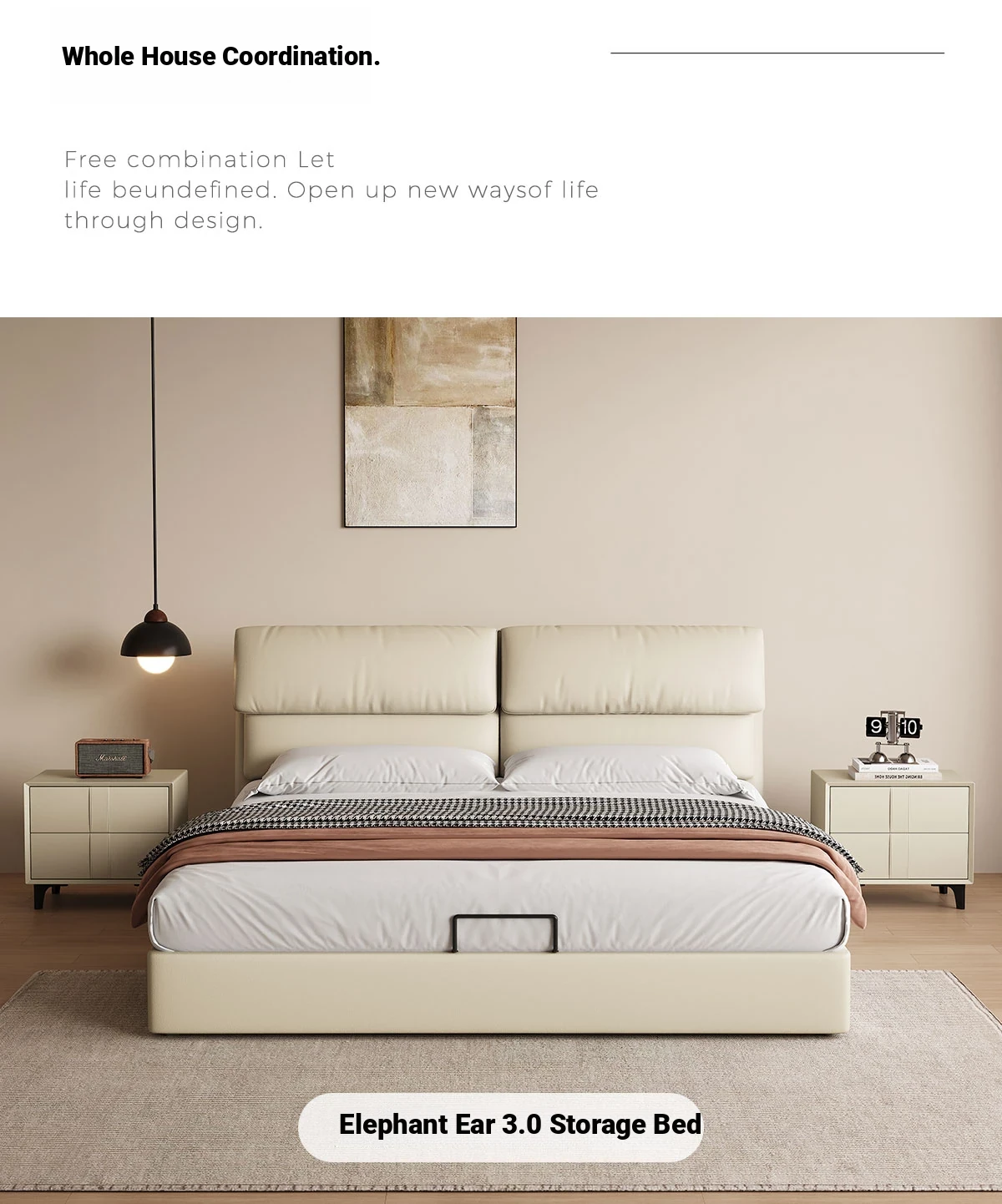 KADLI Elephant Ear Bed - Modern Minimalist Double Bed with Storage for Master Bedroom, High-End Luxury Design, Genuine Leather Upholstery, Perfect for Stylish Living Spaces