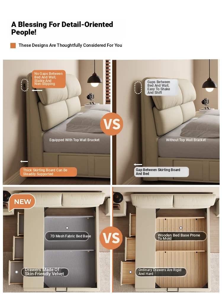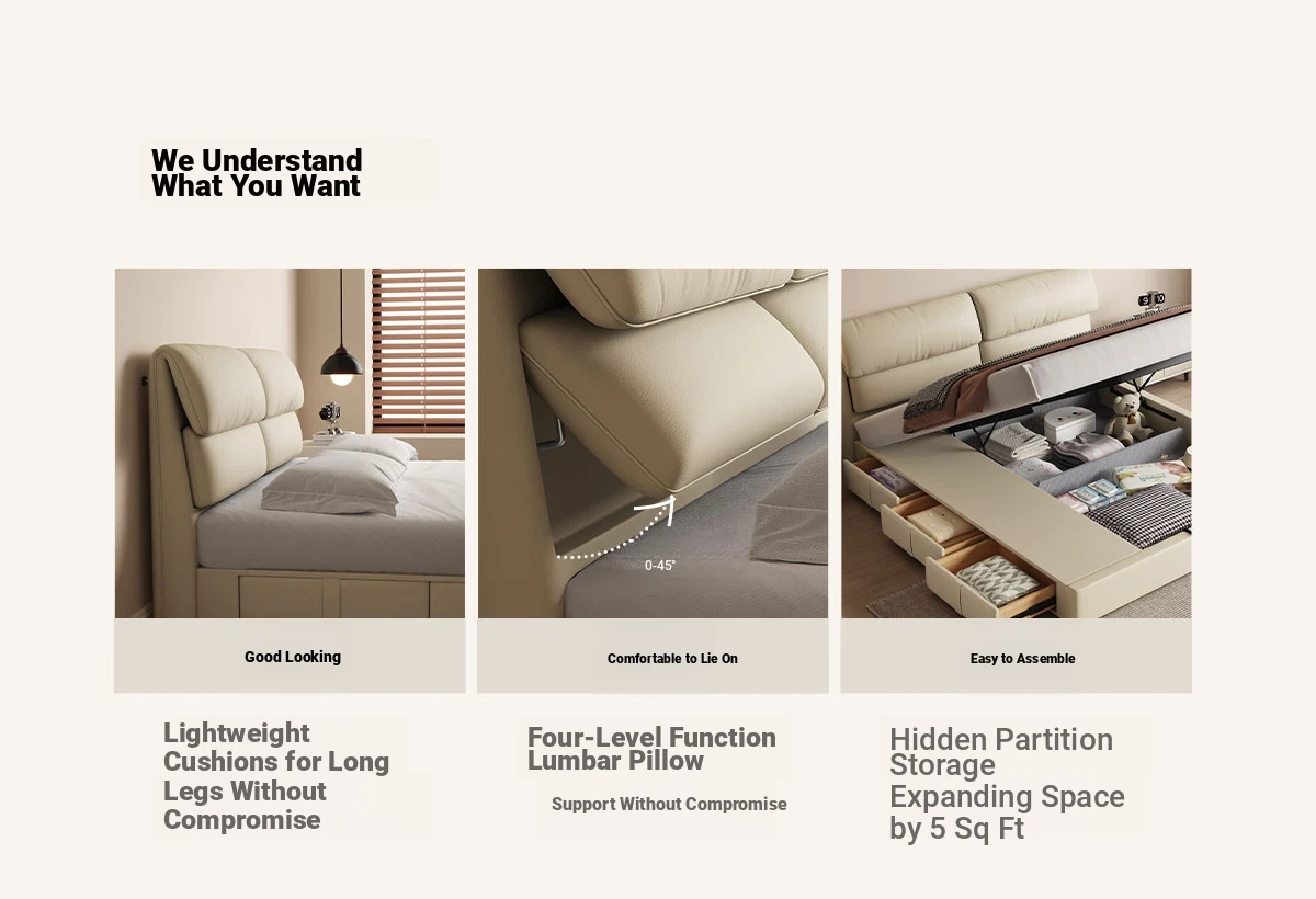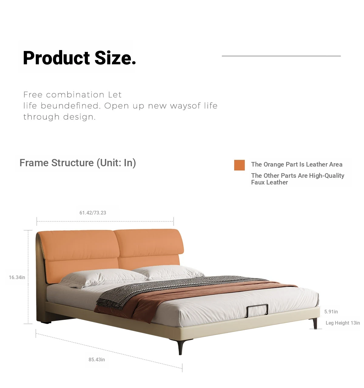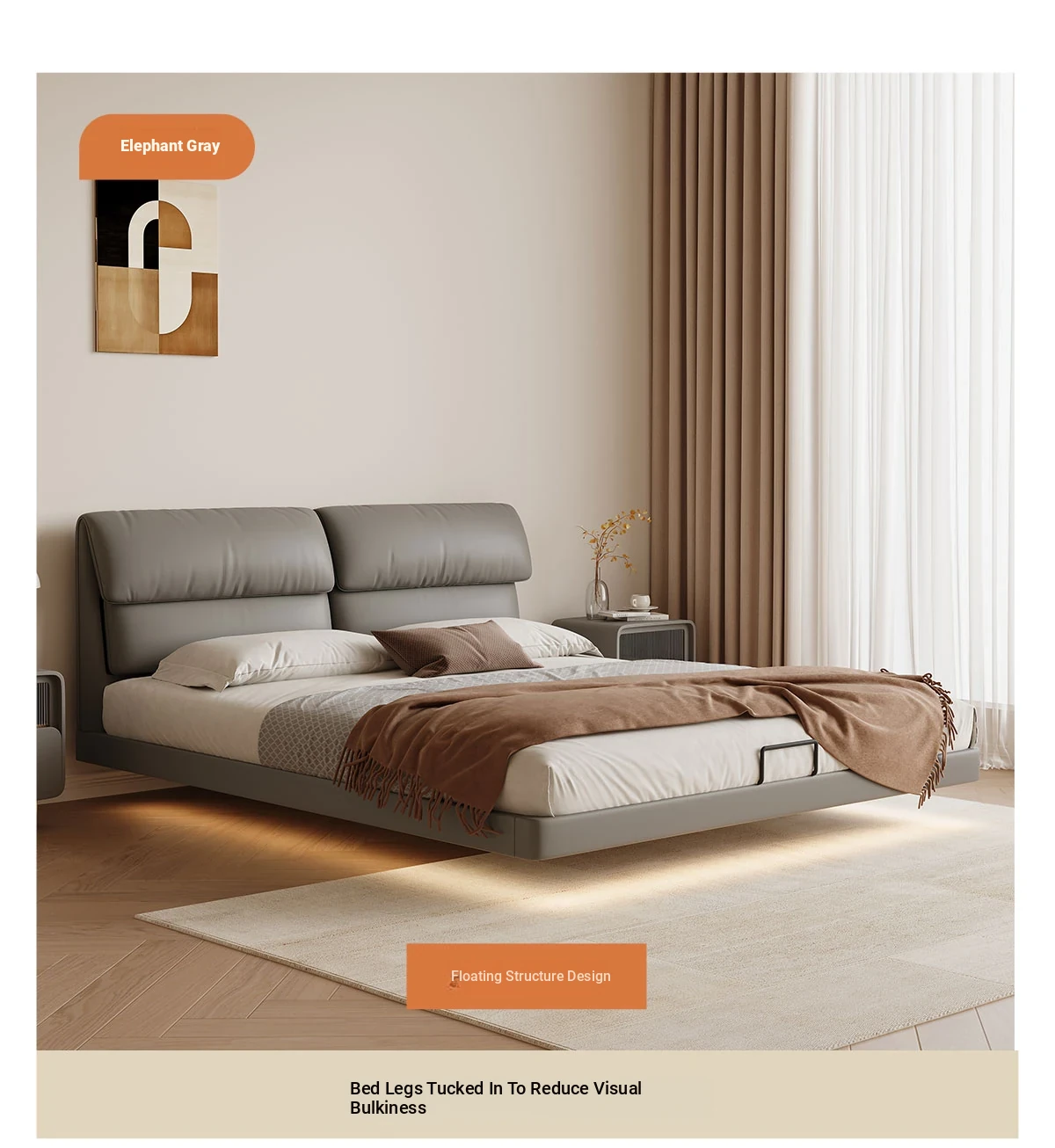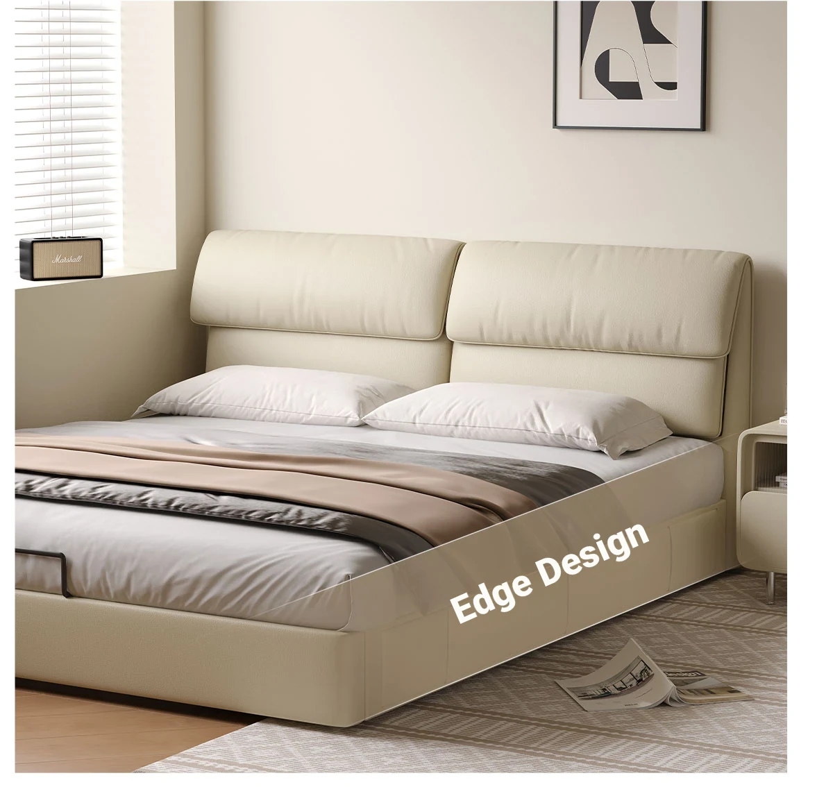 KADLI Elephant Ear Bed - Modern Minimalist Double Bed with Storage for Master Bedroom, High-End Luxury Design, Genuine Leather Upholstery, Perfect for Stylish Living Spaces