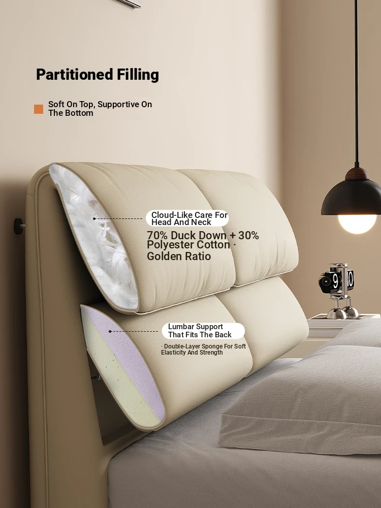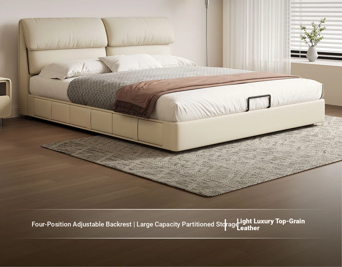 Flagship Edition: Yangdong Xiangyun - Thickened, Textured Top Grain Leather [Reinforced Beechwood Frame] Single Bed