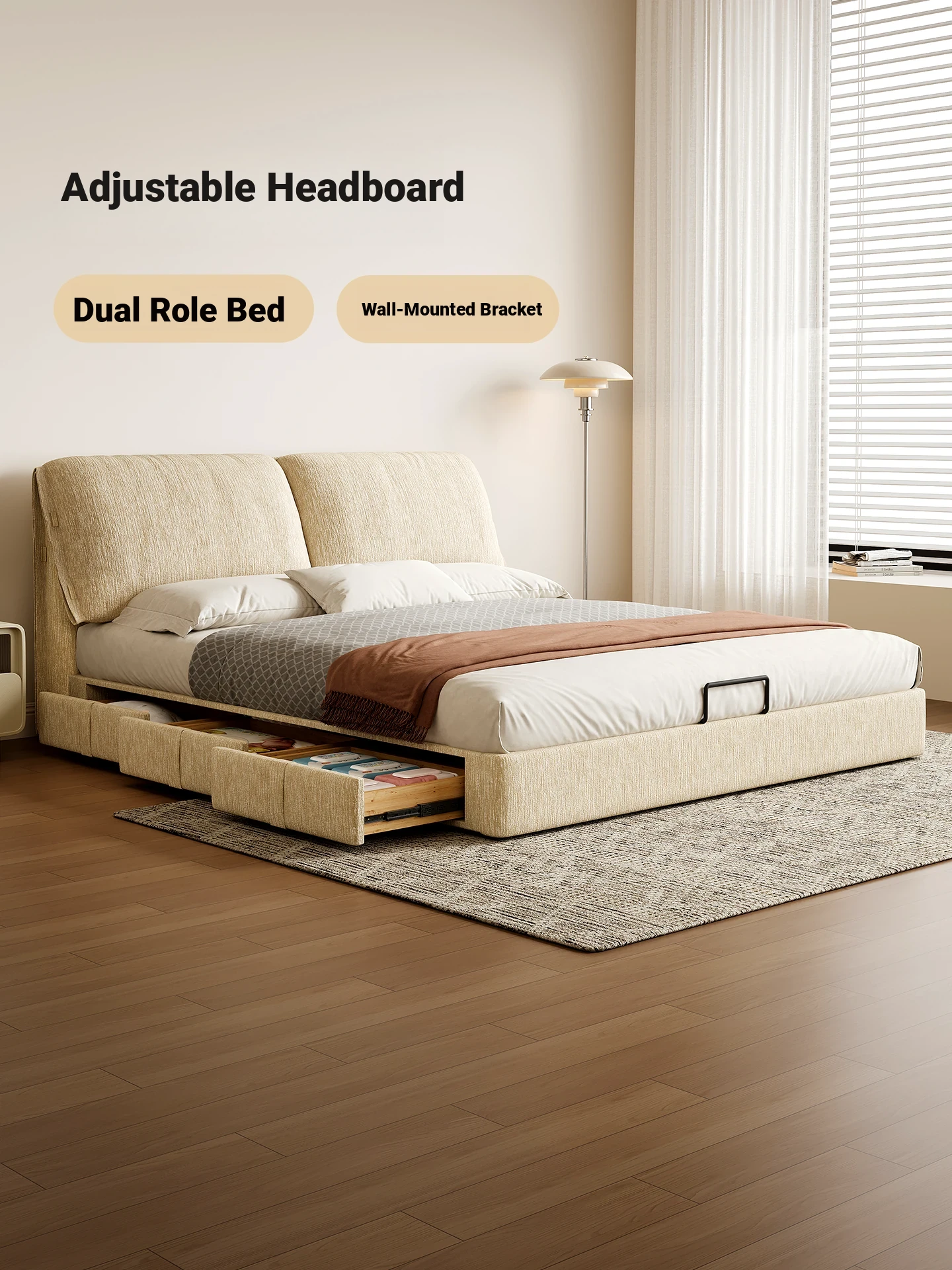 Flagship Version: Chenille Bed [Thick Beech Frame] + Bedside Table *1