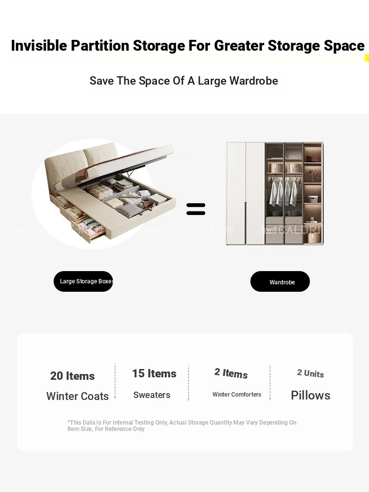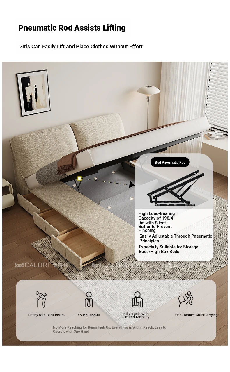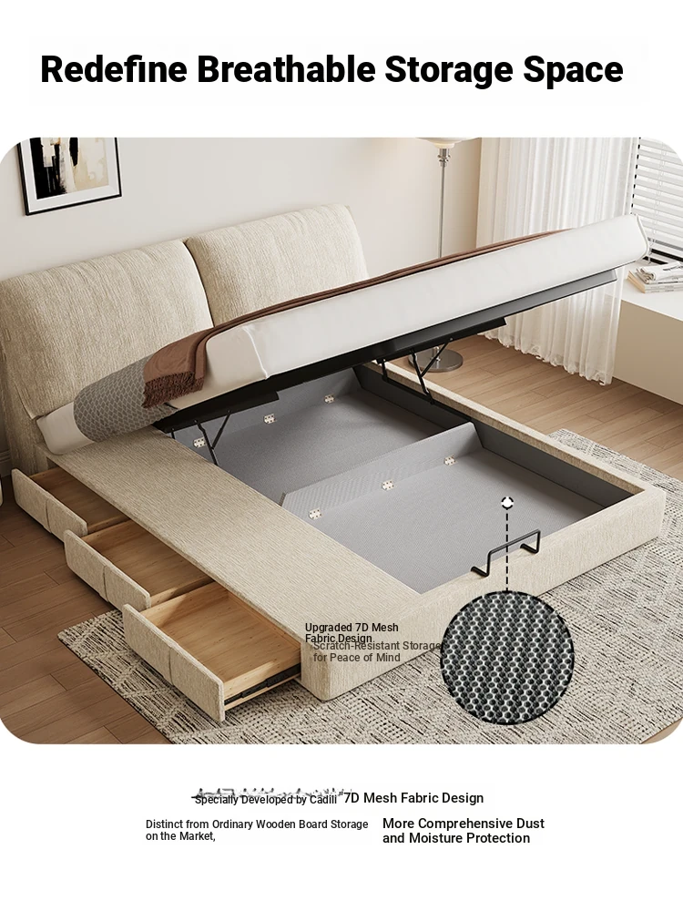 KADLI Modern Minimalist Elephant Ear Chenille Upholstered Bed with Storage - Stylish Double Bed for Master Bedroom, Perfect for Organized Living